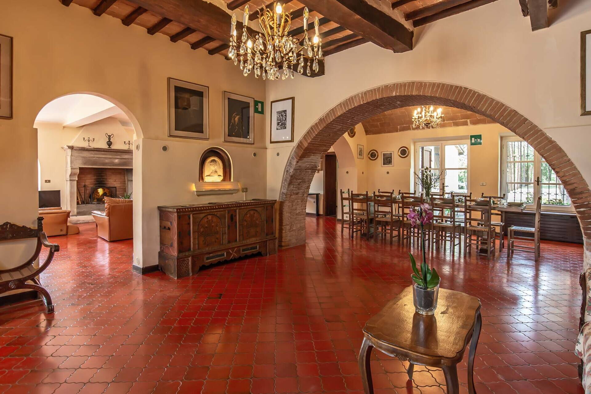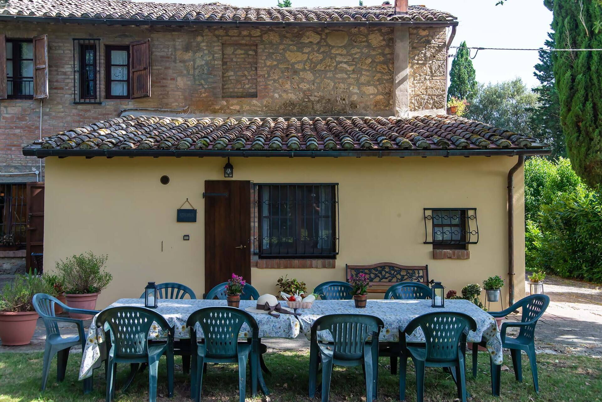 Upon arrival you will be welcomed by the owner or manager where you’ll find a beautiful clean well-maintained property with views of the hills ideal for a peaceful holiday in Tuscany. For your enjoyment you will find a private pool where you can unwind while enjoying a nice cold beverage after a hectic day of visiting museums. Also available outside are a barbecue grill, hot tub and playground. If you enjoy cooking for family and friends there is a well-equipped kitchen including coffee machine, microwave, toaster, stove and refrigerator, as well as, plenty of tableware and cutlery for up to 14 people. If you prefer to dine 'al fresco', there is a fully furnished garden where you can enjoy the weather while dining outdoors.