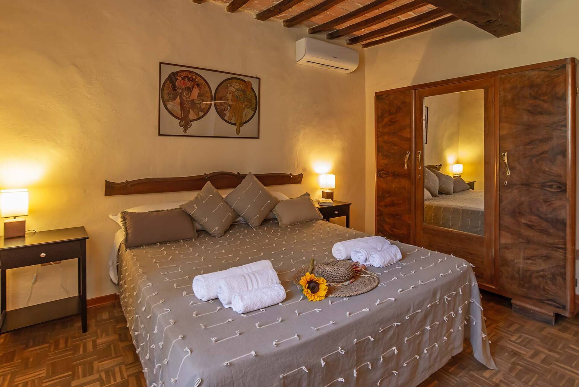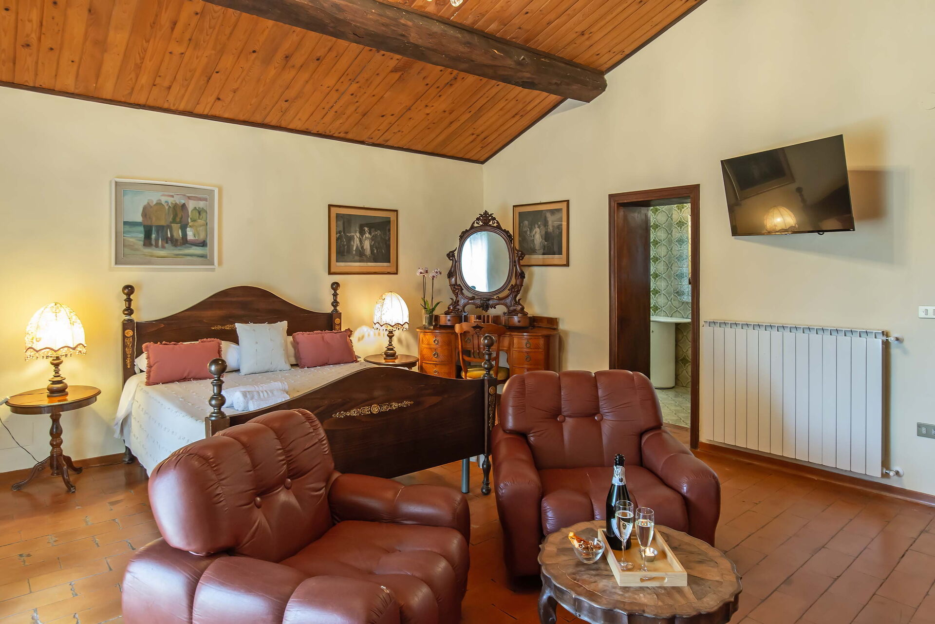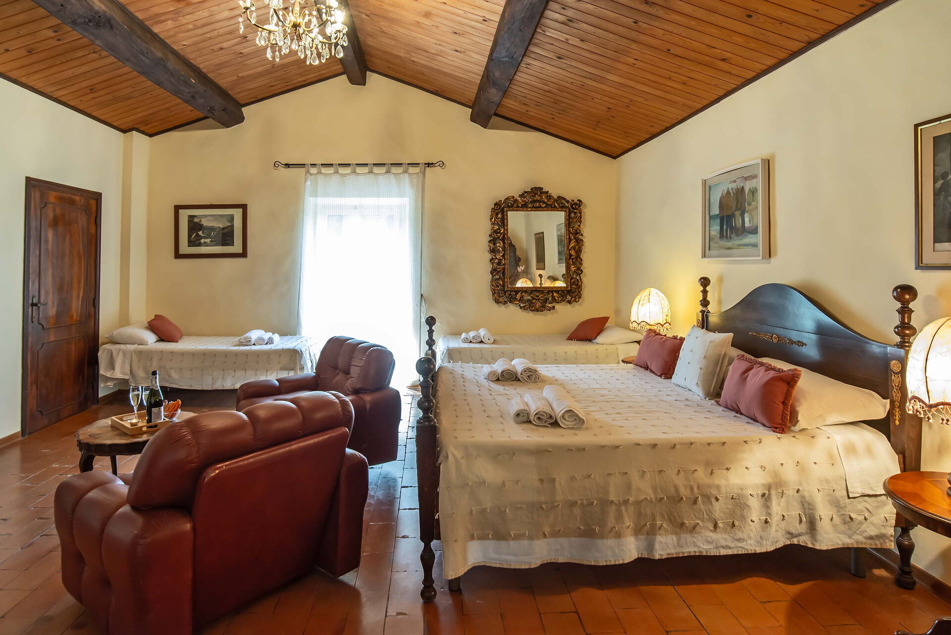 Bedroom + Ensuite Bathroom 3 (15 m2): double bed, sofa bed, WIFI internet, air conditioning, mosquito net, television, working desk, basin, toilet, bidet, shower, hairdryer.