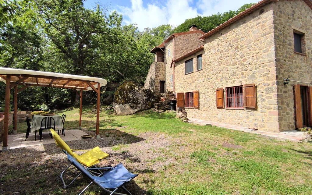 The outdoor spaces of this remarkable property are as generous as they are captivating. Set within more than 5 hectares of natural landscape, the grounds include a lush natural garden and an open meadow that invite leisurely strolls and quiet contemplation. Garden furniture is available for guests who wish to relax outdoors and soak in the peaceful woodland atmosphere, while a barbecue area provides the perfect setting for alfresco dining under the Tuscan sky. The surrounding woods ensure complete privacy, making every moment spent outside feel like a genuine escape from the everyday. Walking paths are accessible just 10 m from the house, offering immediate access to the natural environment directly from the property.