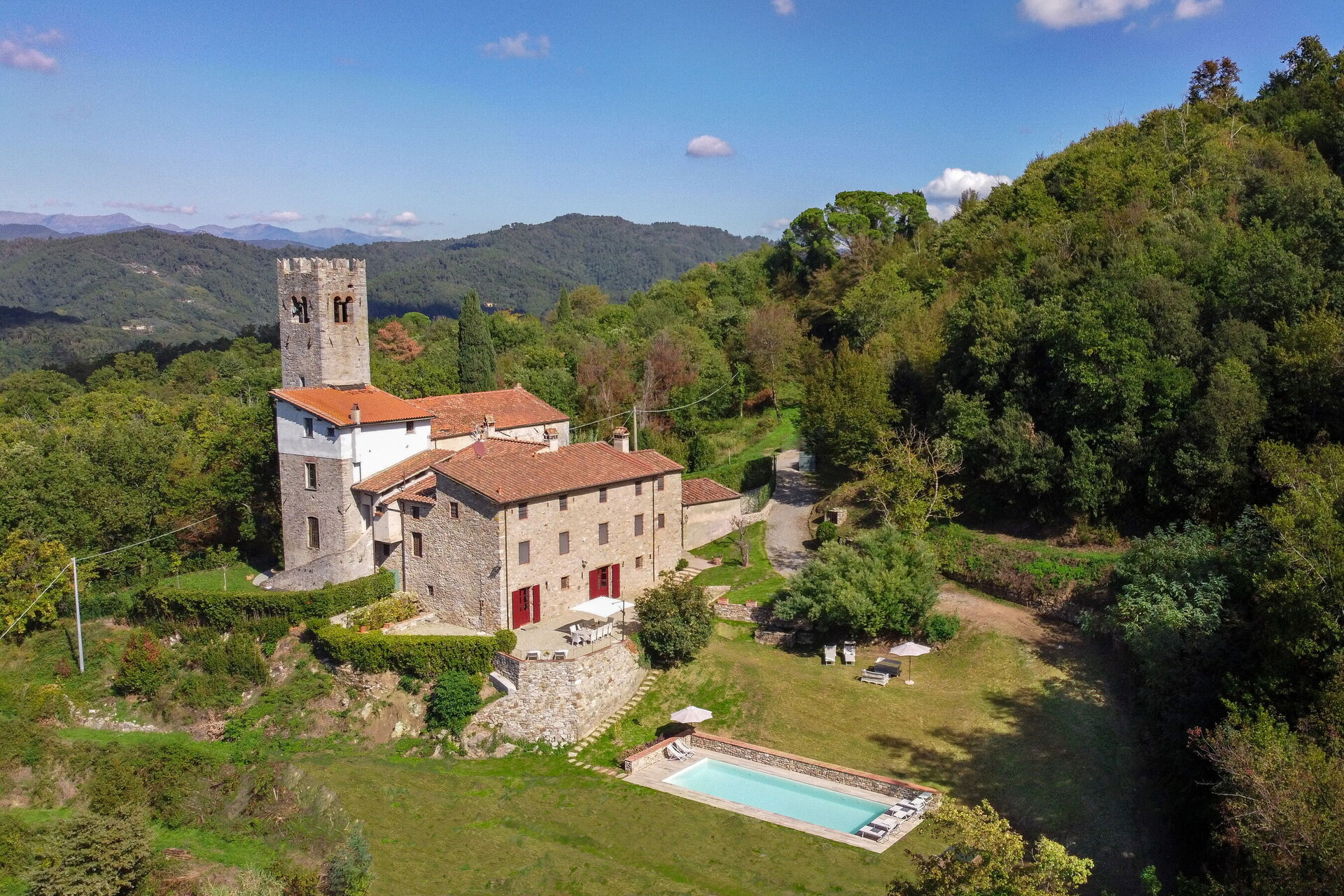 Vacation rental San Tommaso is a lovely stone building (400 sq m) that includes WiFi internet and private pool. The property can accommodate up to 14 guests comfortably in six bedrooms with six bathrooms. Conveniently located , Italy and only 11 km (7 mi) from Lucca.