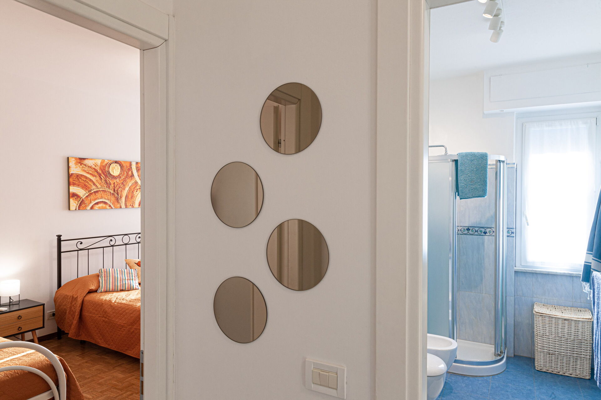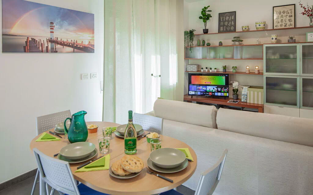 Serena apartment is composed of two bedrooms: one with a double bed, one with a double bed and a single bed. Both rooms are equipped with air conditioning.