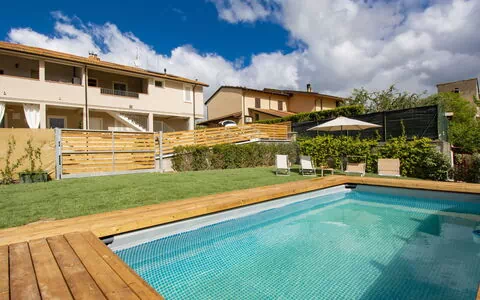 Cinzia is a beautifully renovated apartment house located in Santa Maria a Monte, Italy. It features a private 300 m2 fully fenced garden, providing a safe space for children to play. Enjoy the stunning swimming pool measuring 7 x 4 meters, an outdoor shower, and a children's playground. The property also offers internet wifi and parking for two cars, ensuring a comfortable vacation rental stay.