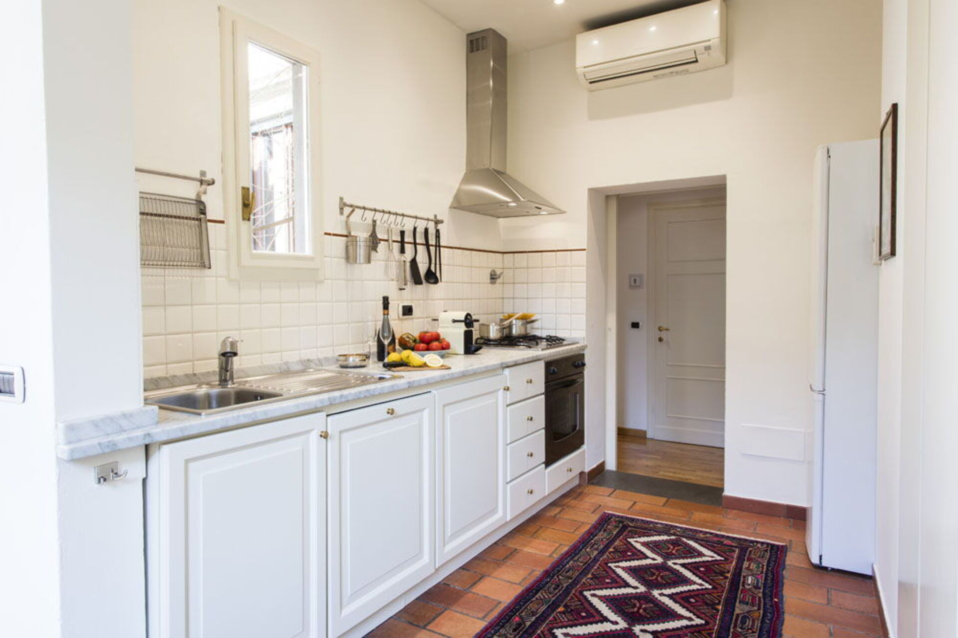 When you arrive you’ll find a beautiful clean well-maintained property with views of the city ideal for a splendid holiday in Tuscany. After a busy day of visiting museums, spend some time with friends and family enjoying a glass of wine - a perfect way to relax at the end the day. Dining with friends and family is a huge part of the Tuscan culture. Take advantage of the well-equipped kitchen to prepare meals using local produce while on your vacation. The kitchen includes coffee machine, stove and refrigerator, as well as, plenty of tableware and cutlery for up to six people.