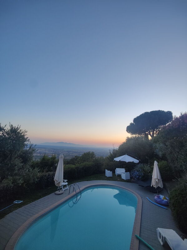 Discover Casa Pier, a beautiful and cozy two-family holiday rental in Larciano, Italy. Surrounded by trees and fields, it boasts a private, fenced garden of 170 m2 with flowers and a seasonal swimming pool (8 x 4 m, available from April 1 to October 30). Enjoy the outdoor shower, pool house with fridge and cooking stove, pergola, garden furniture, barbecue house, and children's playground. Inside, you'll find Internet WiFi, a fitness room, table tennis, and table football. Parking is available for three cars.