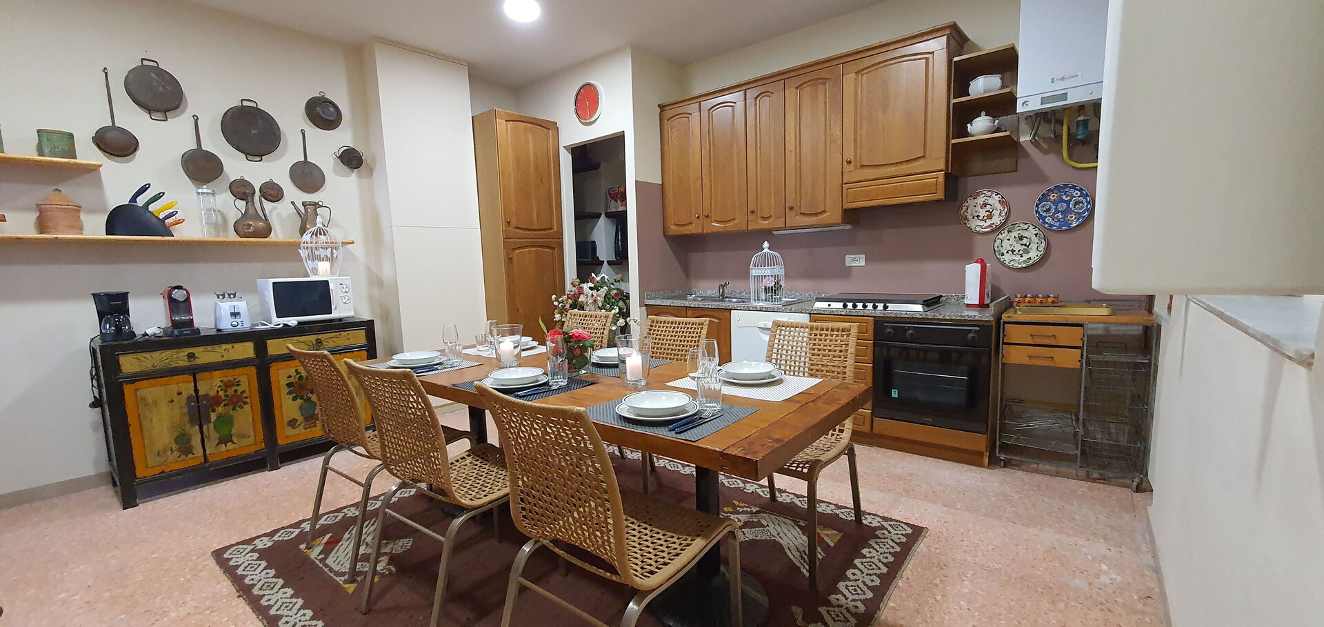 Kitchen: well equipped kitchen, dining table, dishwasher, fridge, freezer, microwave, stove top, oven, toaster, italian coffee machine, american coffee machine, WIFI internet.