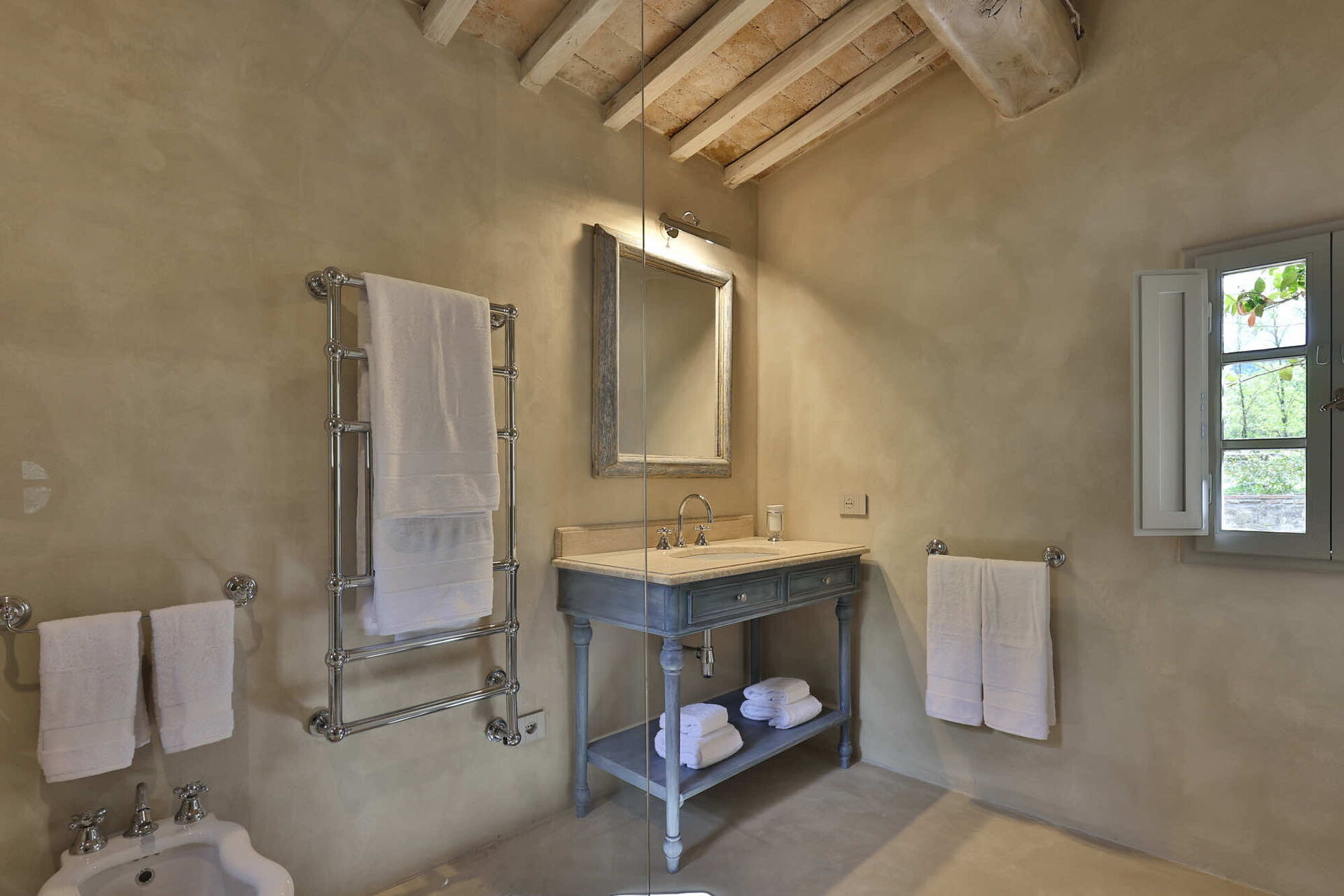 Bedroom + Ensuite Bathroom 2: double bed, WIFI internet, air conditioning, basin, toilet, bidet, shower, hairdryer.