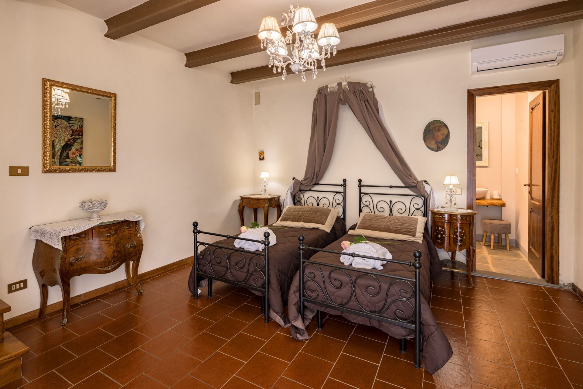 FIRST FLOOR with entrance from external staircase onto large living-dining room with double sofa bed, kitchen-dining room, double bedroom and bathroom with shower. From the living room, down some steps, there is a twin bedroom and private bathroom with shower.