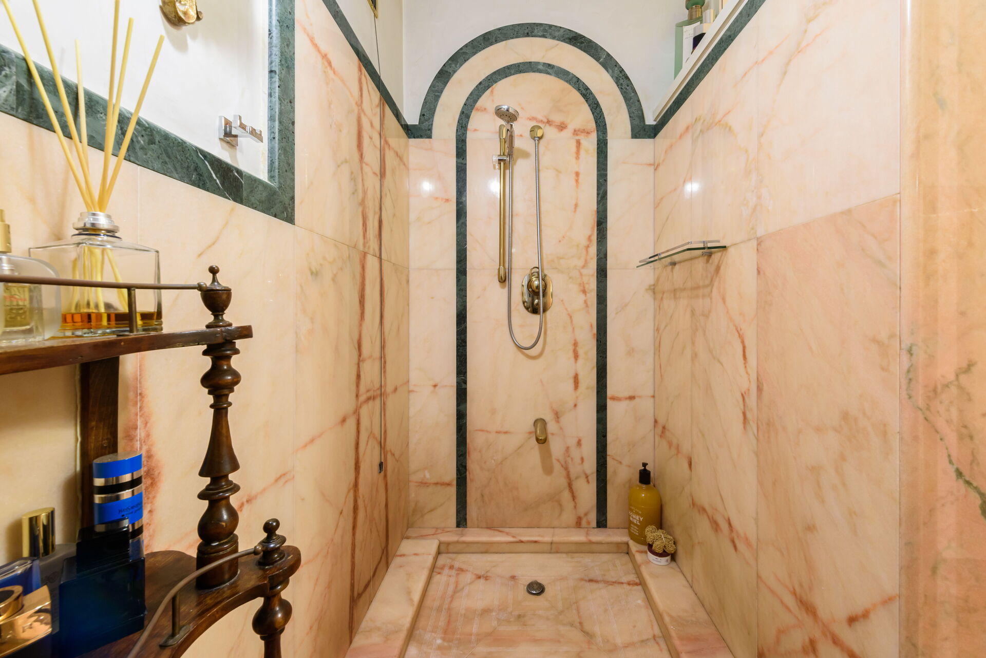 Bathroom 1: basin, toilet, bidet, shower.