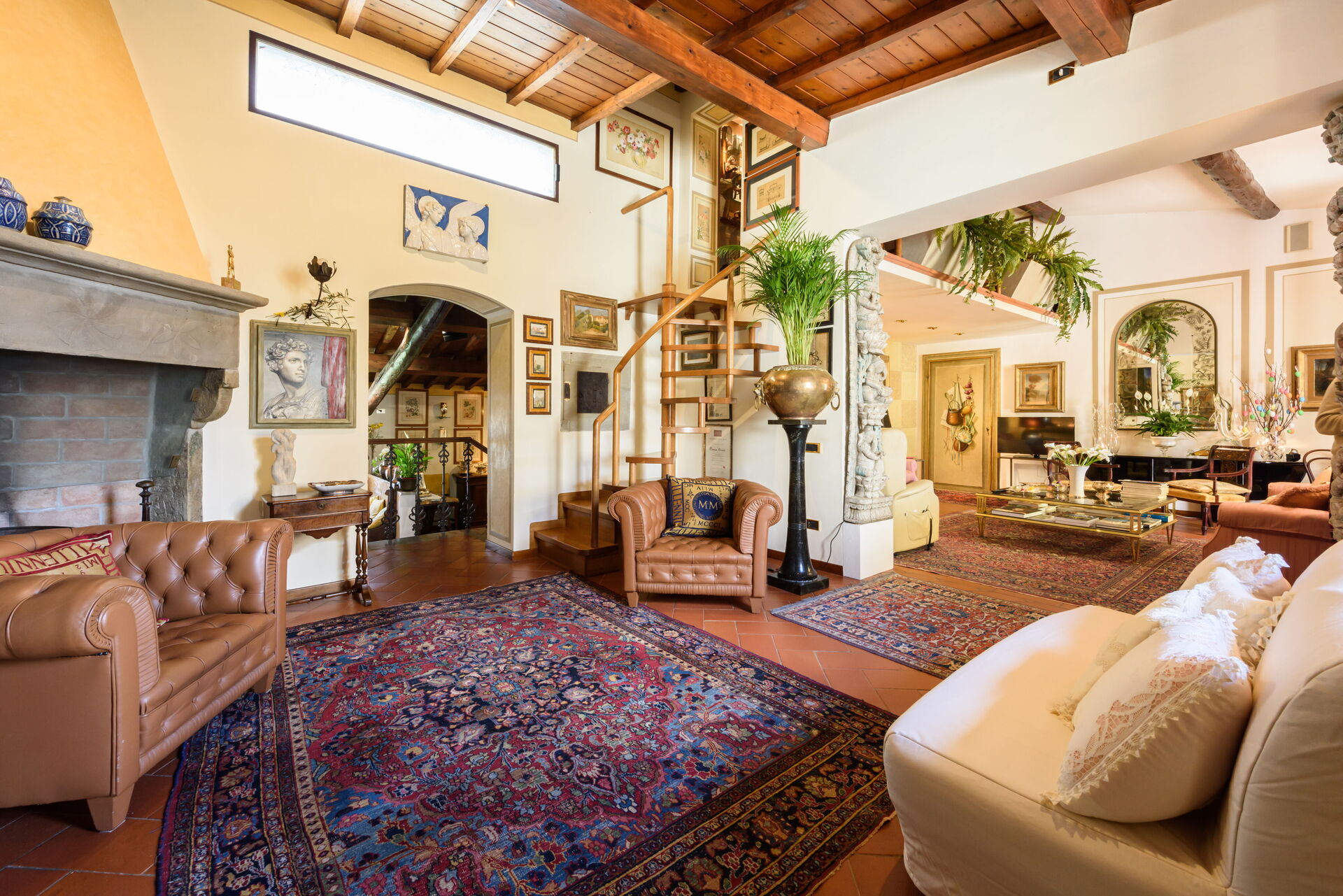 Living room 1: three sofas, three armchairs, fireplace, WIFI internet, air conditioning, television, exit to the terrace.