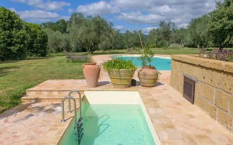 The property is situated in a secluded and quiet position, 50 m from the edge of the forest and 60 km from the sea. Nearby attractions include Sovana (11 km), Saturnia (34 km), Orvieto (49 km), Viterbo (54 km), Val d'Orcia (40 km), and the well-known Lake Bolsena (25 km). For outdoor enthusiasts, mountain biking paths are available 1.5 km away, and a sandy beach "Albinia" is 65 km from the property. Please note that a car is recommended for your stay.