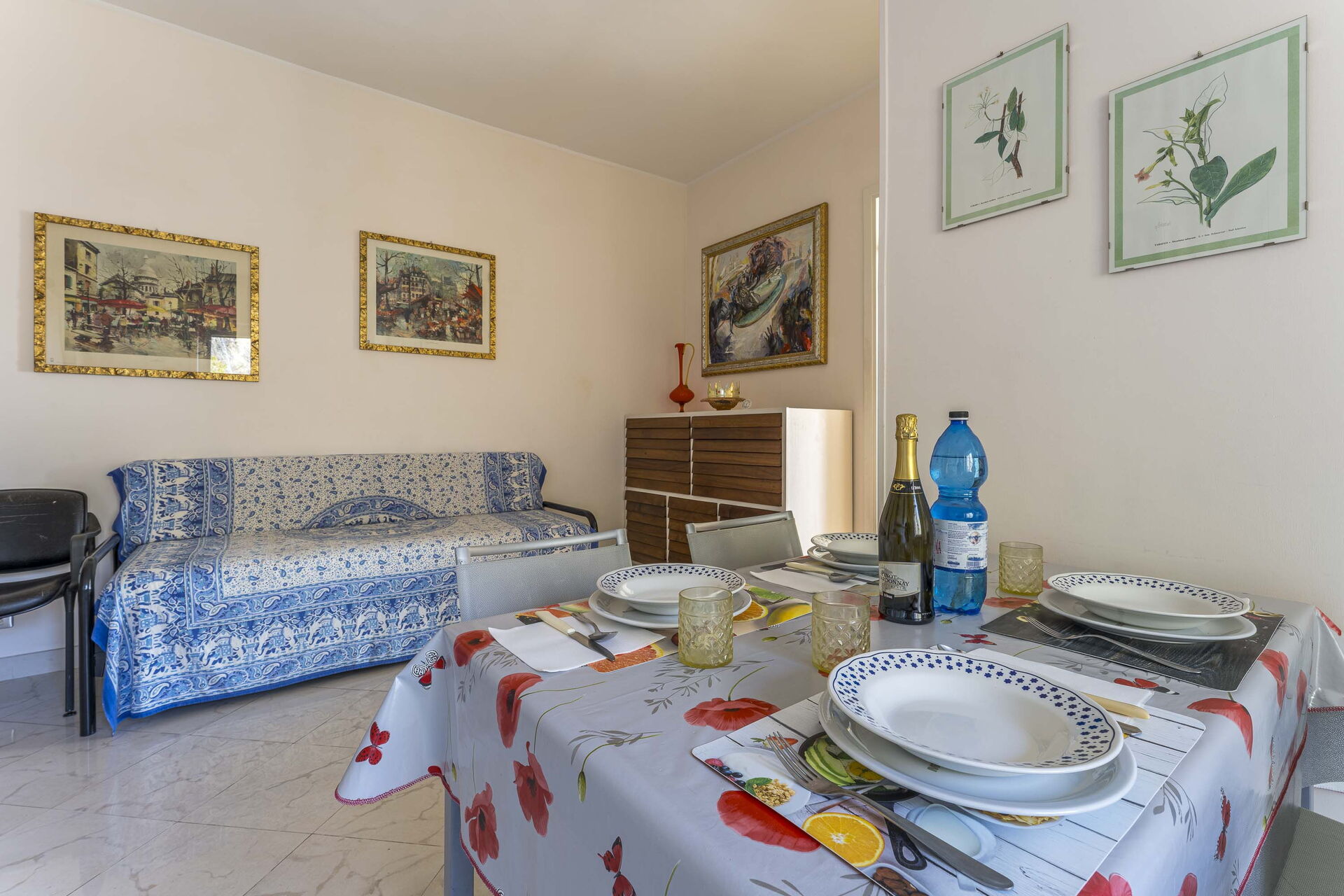 Kitchen + living room: well equipped kitchen, dining table, dishwasher, fridge, freezer, oven, sofa bed, WIFI internet, television.
