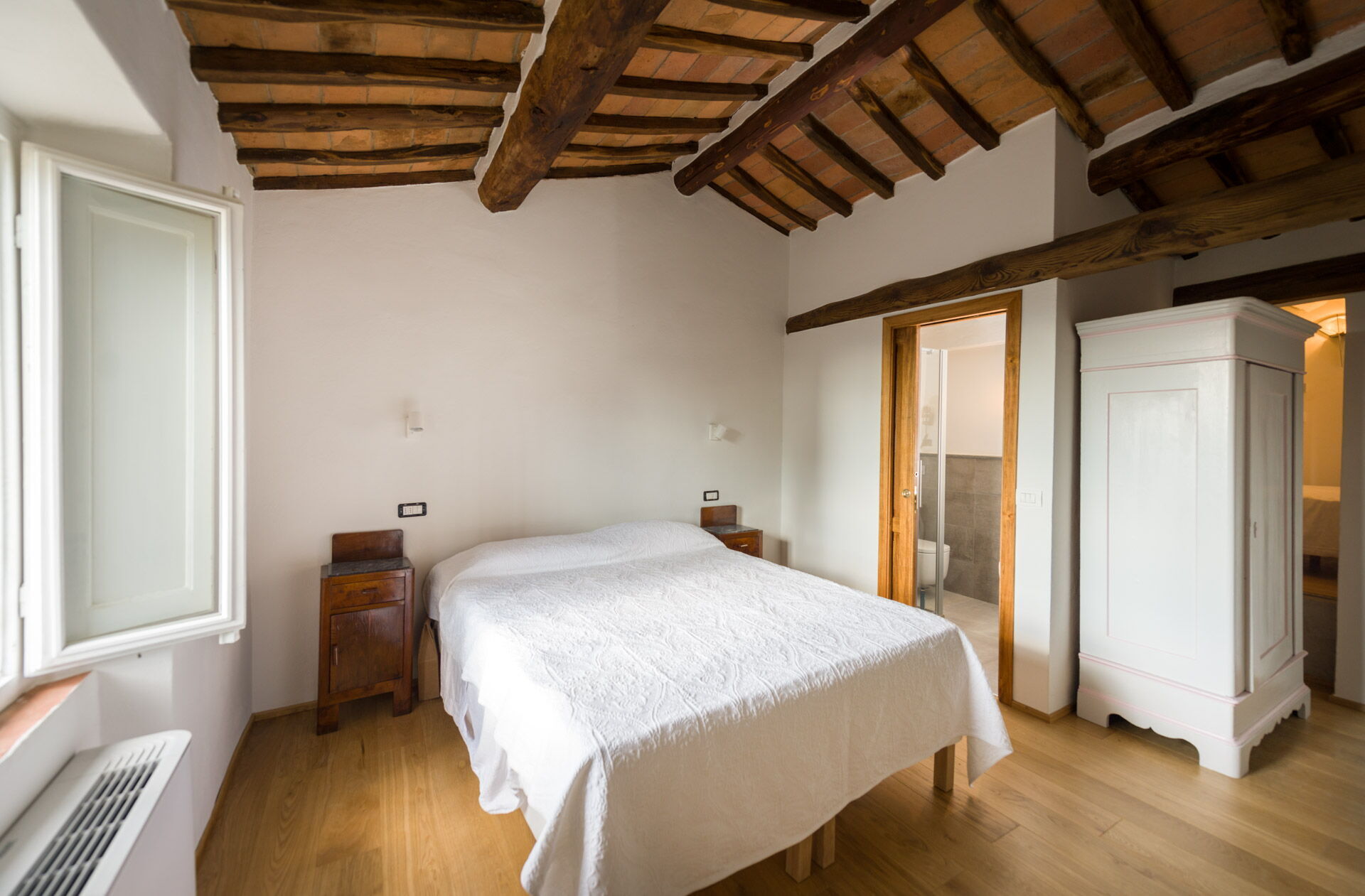 Bedroom + Ensuite Bathroom 2: double bed, single bed, WIFI internet, air conditioning, mosquito net, basin, toilet, bidet, shower, hairdryer.