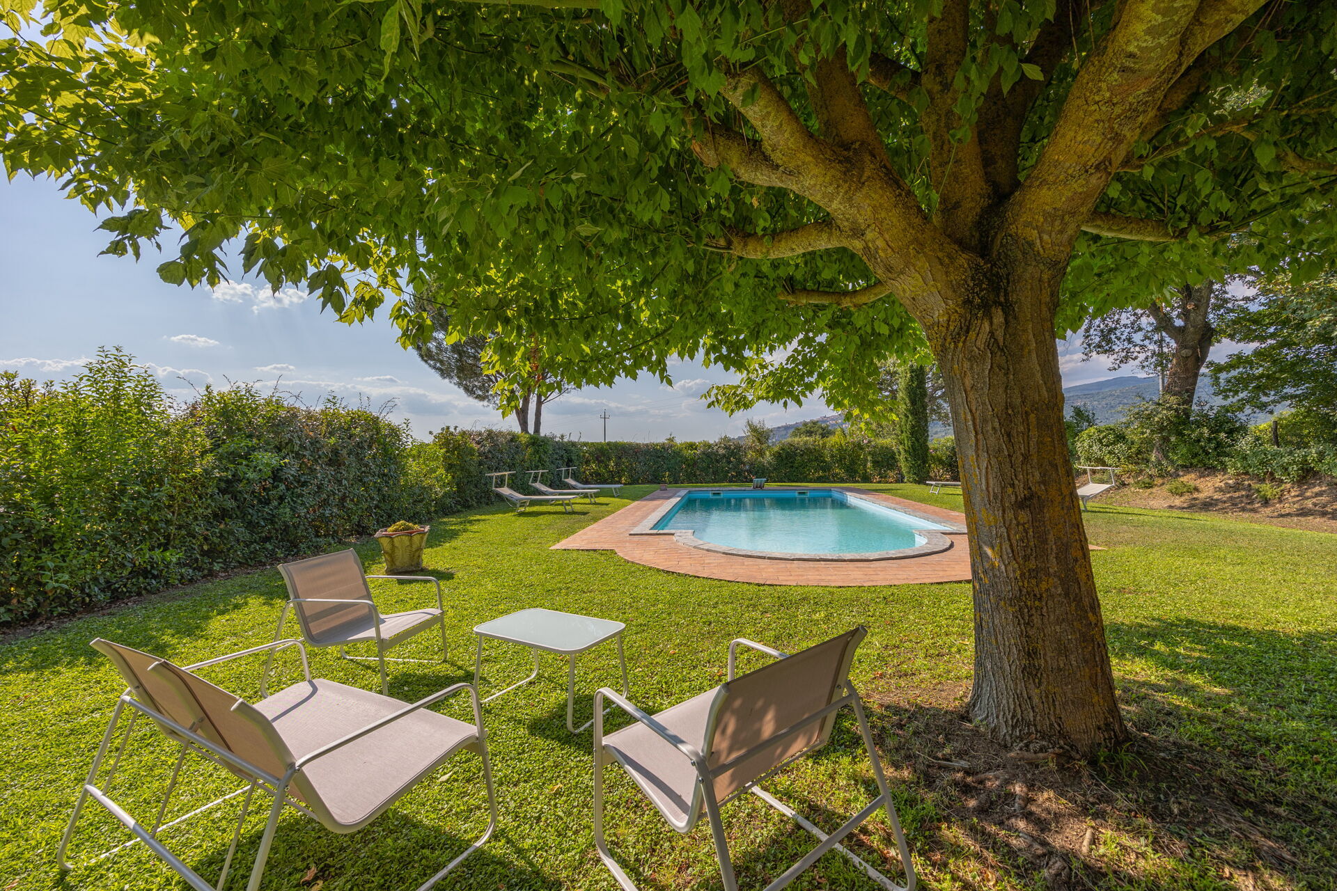After arriving at Villa Marconi you’ll find a nice clean well-maintained property perfect for a relaxing holiday in Tuscany. After a hectic day of shopping, spend some time with friends and family poolside enjoying a glass of wine - a perfect way to relax at the end the day.