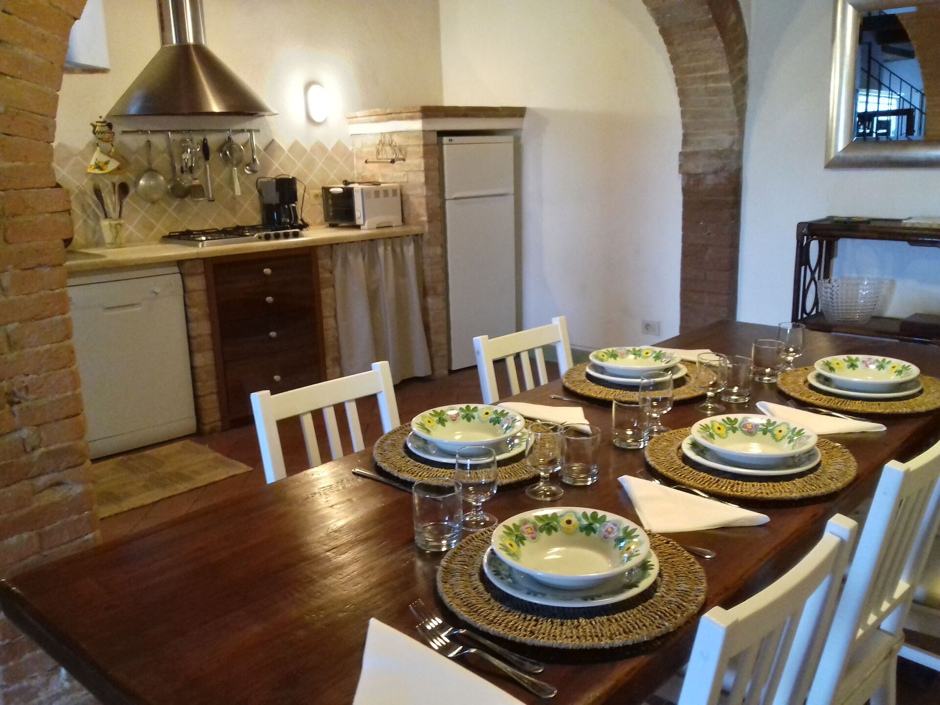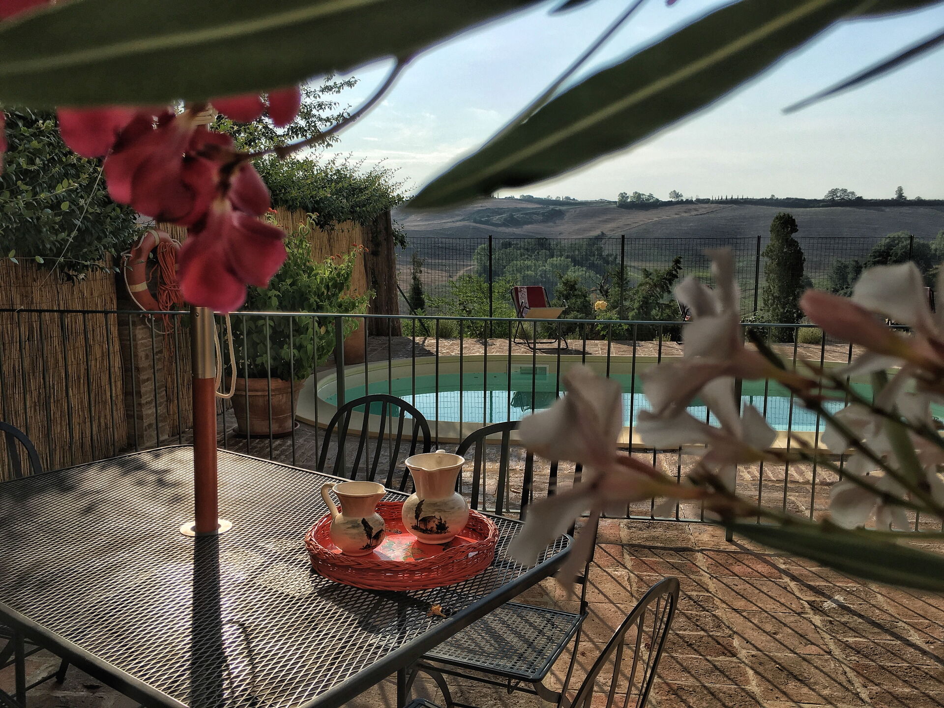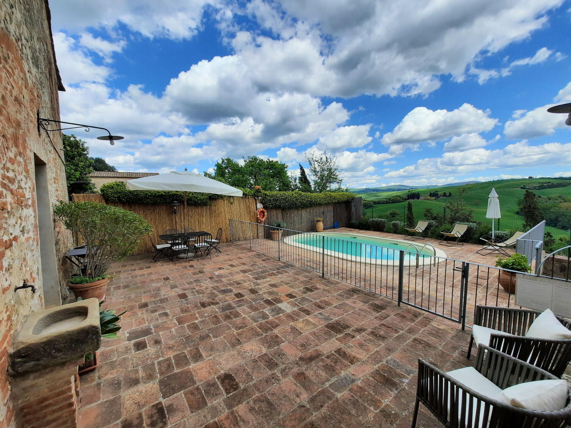 After arriving at Casa Le Crete you’ll find a beautiful clean well-maintained property with views of the hills ideal for a relaxing vacation in Tuscany. After a busy day of sightseeing, spend some time with friends and family poolside enjoying a glass of wine - a perfect way to relax at the end the day. Also available outdoors are a barbecue grill and patio. Sharing a meal with friends and family is a big part of the Tuscan culture. Take advantage of the well-equipped kitchen to prepare meals using local produce while on your vacation. The kitchen includes coffee machine, toaster, stove and refrigerator, as well as, plenty of tableware and cutlery for up to five people. Dine 'al fresco' like a real Tuscan, the fully furnished patio is the perfect setting to enjoy food, family and the beautiful Tuscan weather.