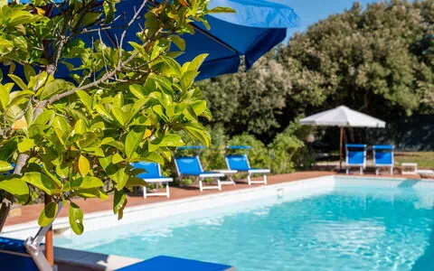 Villa Marsiliana is a spacious 7-room villa spanning 270 square meters across two levels. It features tasteful and stylish furnishings, including a living room with a panoramic window and a TV, leading to the garden. The dining room boasts an open-hearth fireplace (for decoration only) and also provides access to the garden. On the ground floor, you'll find a large room with a double bed, shower, bidet, WC, and air conditioning, with an exit to the garden. The open kitchen is well-equipped with an oven, dishwasher, six gas rings, toaster, kettle, microwave, and electric coffee machine, and it also leads to the garden and terrace. There is an additional shower, bidet, and WC on this level.