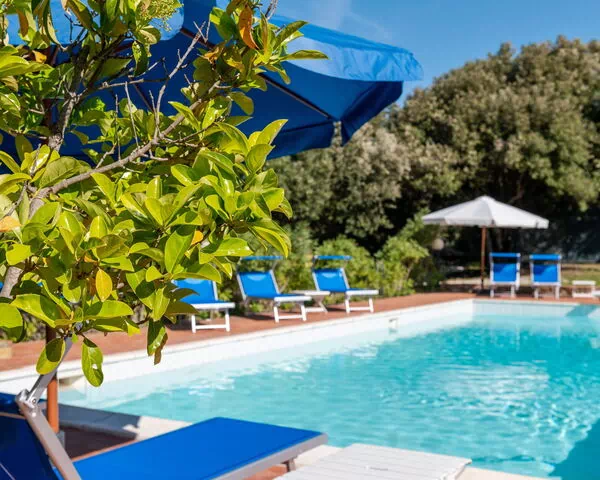 The outdoor areas feature various terraces and intimate spots, perfect for socializing and enjoying an aperitivo. A large outdoor dining table is located on a terrace, equipped with a barbecue, overlooking the picturesque former episcopal summer residence and offering stunning sunset views. Another shaded table under a covered terrace provides a peaceful setting for breakfast or lunch. The rectangular pool offers absolute privacy while boasting gorgeous views of the Maremma countryside and the Gulf of Follonica. The property borders the Riserva Statale Marsiliana natural park, ensuring tranquility.