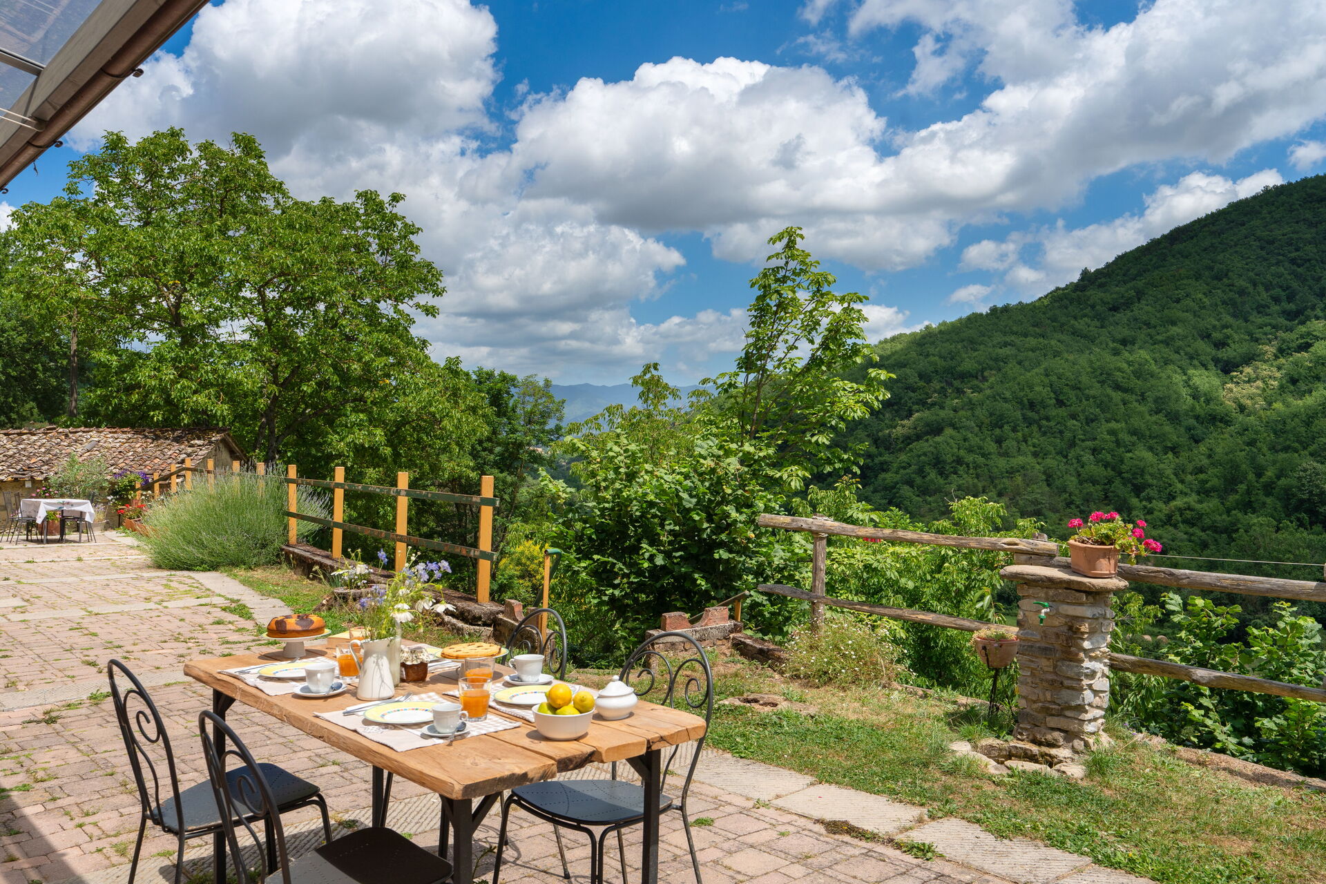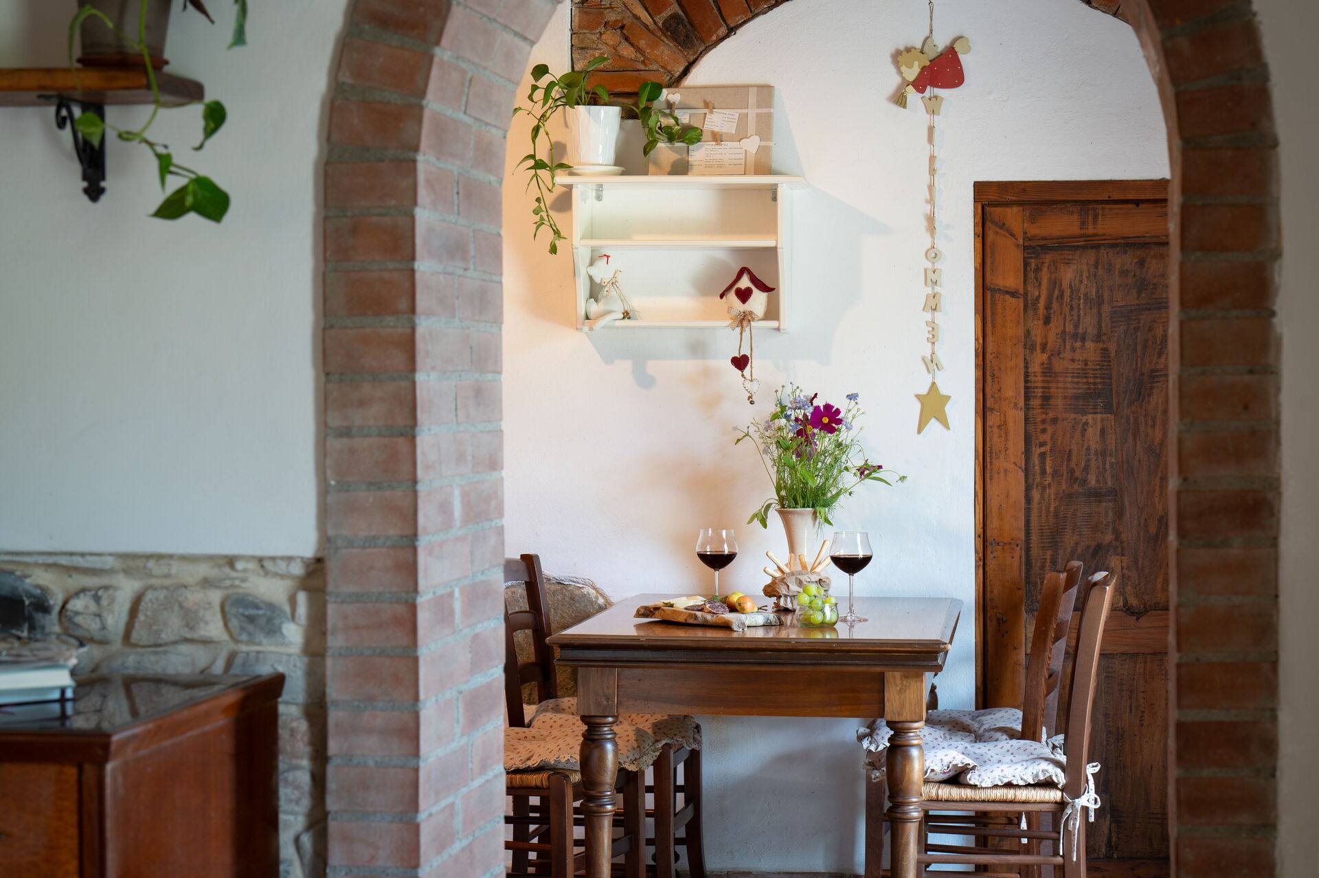 The property, which is accessed via approximately 200m of unmade 'white' road, is immersed in the quiet Tuscan countryside, surrounded by oak and chestnut forests. Part of the building is occupied by the property owners, who have their own private entrance.