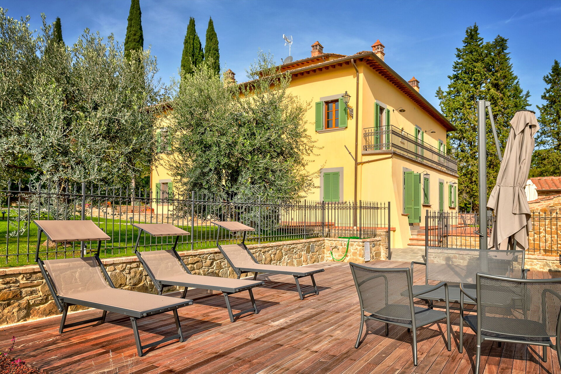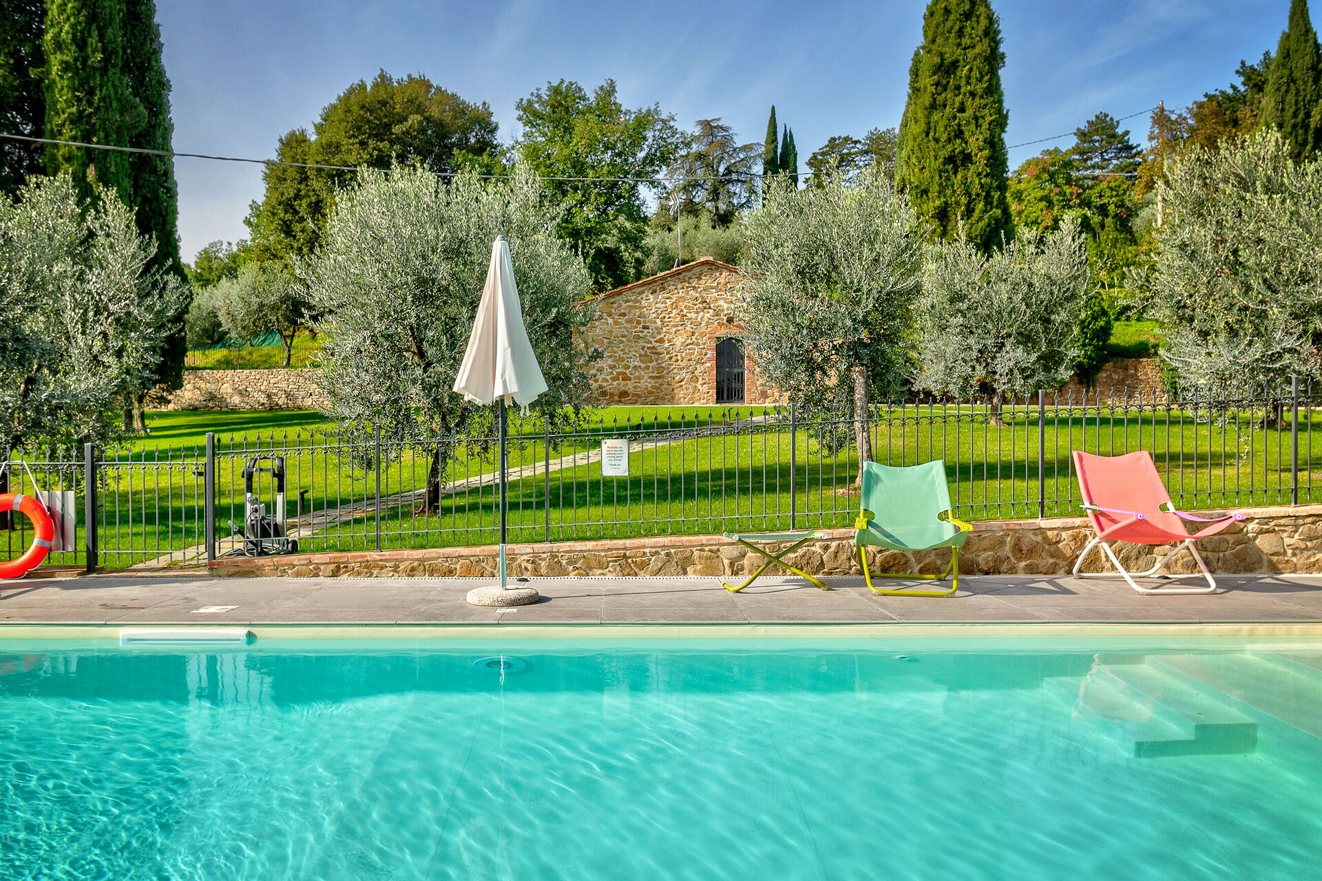 When you arrive at Villa Savina you’ll find a nice clean well-maintained property with views of the hills and the city perfect for a peaceful holiday in Tuscany. Regardless of how you spend your days - shopping, sightseeing, visiting museums or just driving in the countryside, when you arrive home you can relax with your family and friends at the pool for a perfect ending to another day in Tuscany. Also available outdoors are a playground, patio and barbecue grill. If you enjoy cooking for family and friends there is a well-equipped kitchen including coffee machine, microwave, toaster, stove and refrigerator, as well as, plenty of tableware and cutlery for up to 14 people. If you prefer to dine 'al fresco', there is a fully furnished balcony where you can enjoy the weather while dining outdoors.