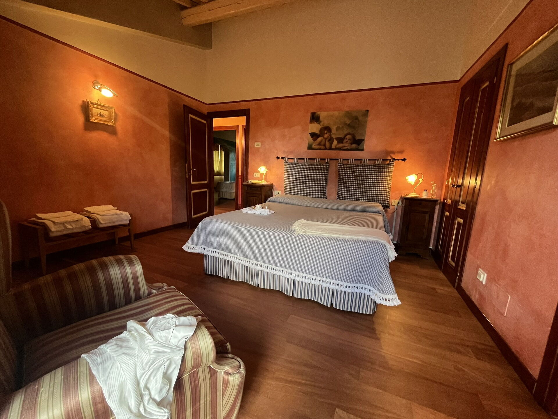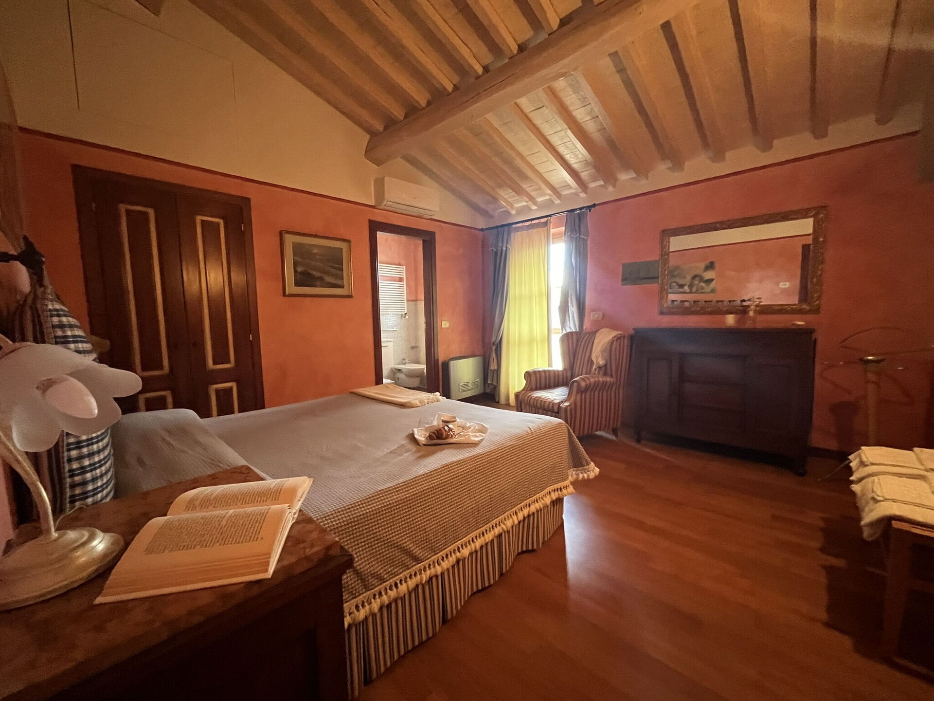 Bedroom + Ensuite Bathroom 6: double bed, WIFI internet, air conditioning, television, safe, basin, toilet, bidet, shower.