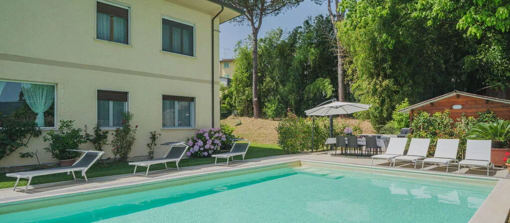 The property is located 2.4 km from the center of Camaiore, on the outskirts, and 8.5 km from the center of Lido di Camaiore. It is 26 km from the center of Lucca and 8.5 km from the sea and beach. Nearby attractions include Pietrasanta (9 km), Forte dei Marmi (16 km), Marina di Pietrasanta (12 km), Pisa (32 km), Carrara Cave Fantiscritti (45 km), and Riomaggiore 5 Terre (78 km). Guests can also explore well-known lakes like Torre del Lago (17 km) and Lago di Massaciuccoli (24 km), as well as hiking paths at Antro del Corchia Levigliani (28 km) and Grotta all'Onda Casoli (12 km). A car is recommended for getting around.
