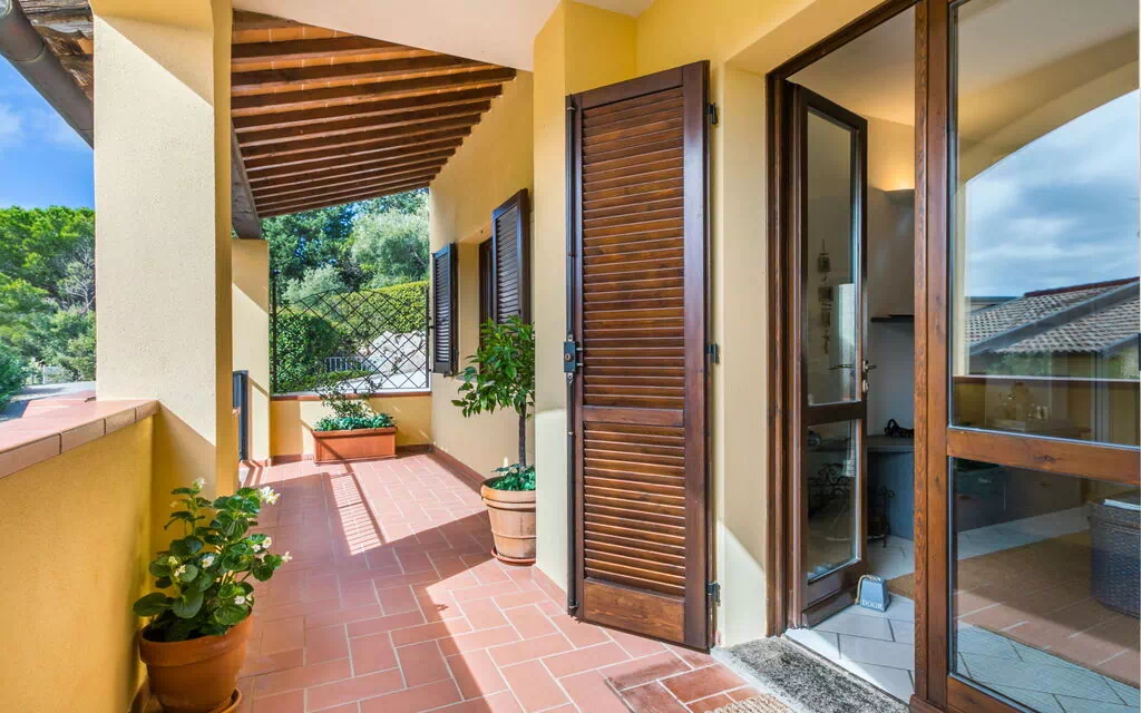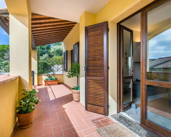 You will be staying in a 3-room apartment called "Valentina" that is 55 square meters and located on the upper floor. The spacious and beautifully furnished living room has an open-hearth fireplace (only for decoration) and a TV, with an exit leading to a balcony and terrace. There is one double bedroom equipped with electric heating and air conditioning. The other room has two beds. The open kitchen provides an oven, dishwasher, gas stove with 4 gas rings, toaster, kettle, and electric coffee machine, with an exit to the garden and terrace.
