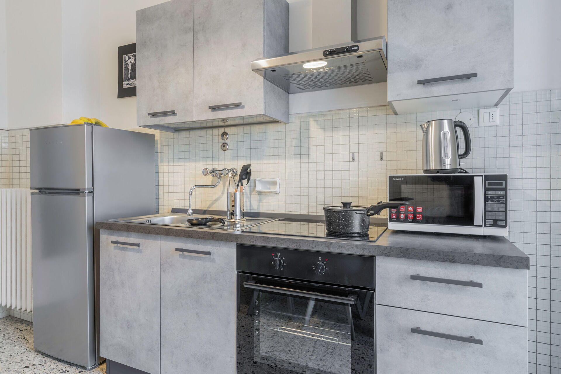 Kitchen: well equipped kitchen, dining table, fridge, freezer, microwave, stove top, italian coffee machine, WIFI internet, exit to the balcony.