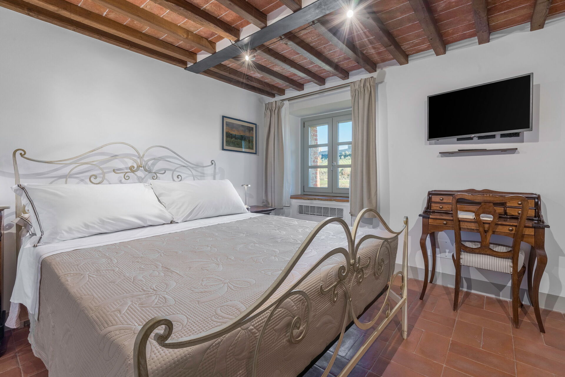 Upon arrival at Le Torri, Borgo Campassini, Monteriggioni you’ll find a lovely clean well-maintained property with views of the hills perfect for a relaxing vacation in Tuscany. Regardless of how you spend your days - visiting museums, sightseeing, shopping or just driving in the countryside, when you arrive home you can unwind with your family and friends at the pool for a perfect ending to another day in Tuscany. If you enjoy cooking for family and friends there is a well-equipped kitchen including coffee machine, microwave, stove and refrigerator, as well as, plenty of tableware and cutlery for up to four people.