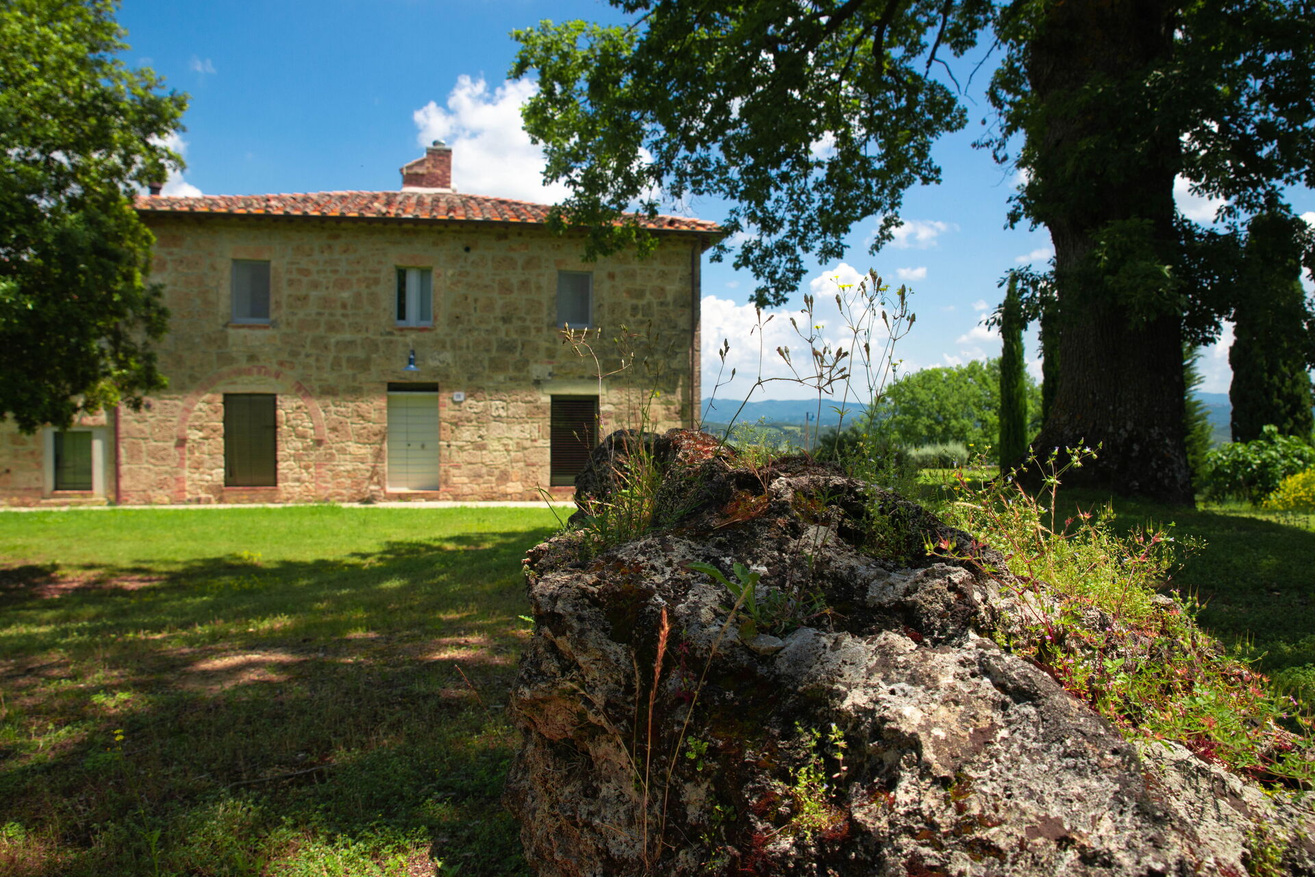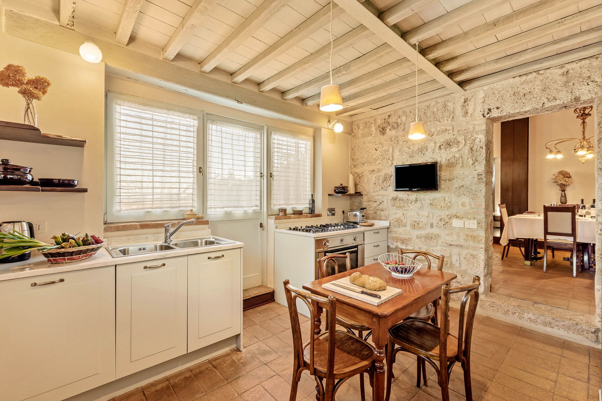 Property Terra Quercus is a lovely stone building that includes air conditioning, WiFi internet and private pool. The property can accommodate up to six guests comfortably in four bedrooms with four bathrooms. Conveniently located 3 km (2 mi) from Sarteano, Italy in the tourist area "Orcia Valley" and only 25 km (15 mi) from Montepulciano.