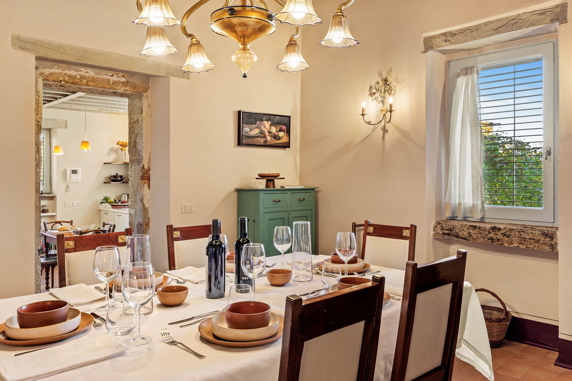 Kitchen: well equipped kitchen, dining table (people: 4), dishwasher, fridge, freezer, microwave, stove top, oven, toaster, italian coffee machine, WIFI internet, television, exit to the garden.