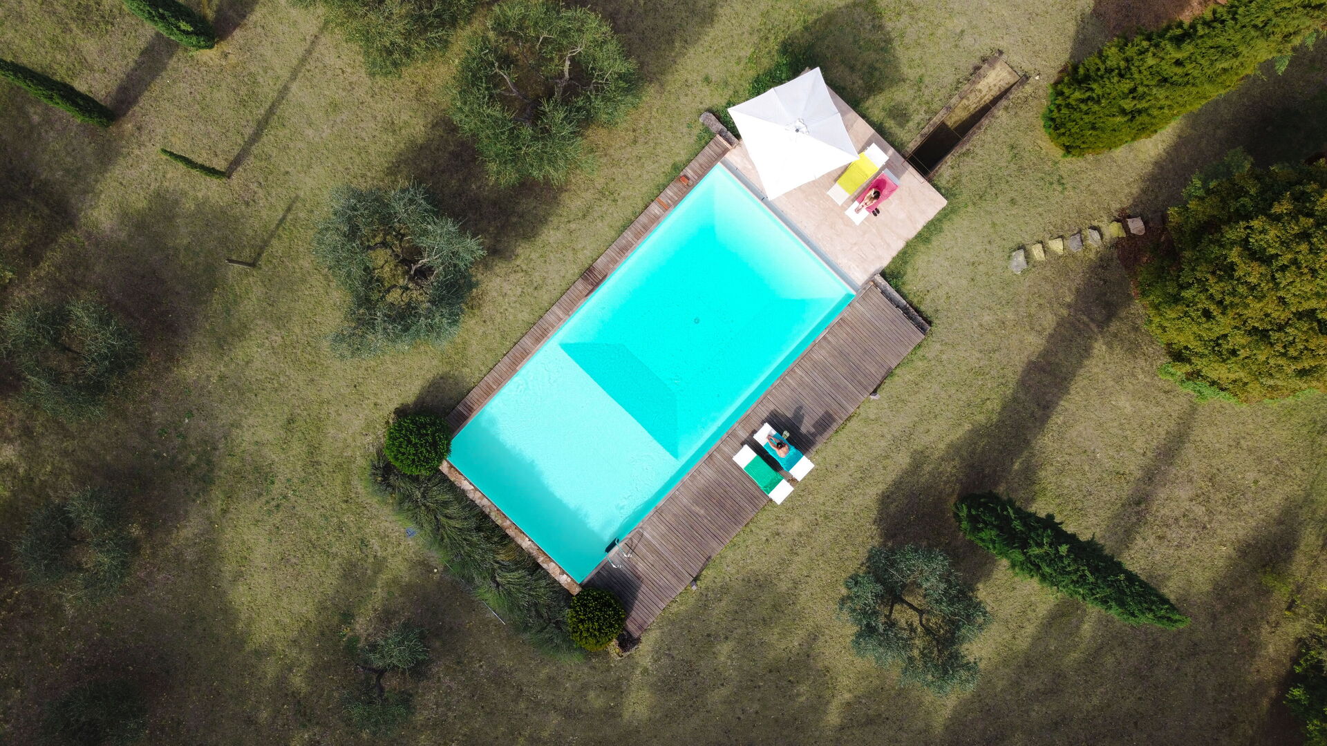 Garden: swimming pool (private, length: 12.5m, width: 6m, max. depth: 2.2m, min. depth: 1.2m, outdoor), WIFI internet, barbecue, al fresco dining, dining table (people: 8), gazebo, garden furniture, terrace furniture, six sunbeds, fenced, enclosed property.