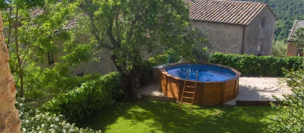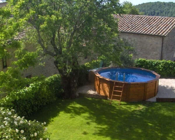 The villa is surrounded by extensive private garden space that enhances the sense of tranquility and privacy. The outdoor area features a circular swimming pool with a diameter of 5 meters and a depth of 1.5 meters, perfect for refreshing dips during warm summer days. The garden provides ample space for outdoor relaxation and leisure activities, allowing you to fully immerse yourself in the peaceful atmosphere of this medieval setting while enjoying the stunning views of the surrounding Tuscan and Umbrian countryside.