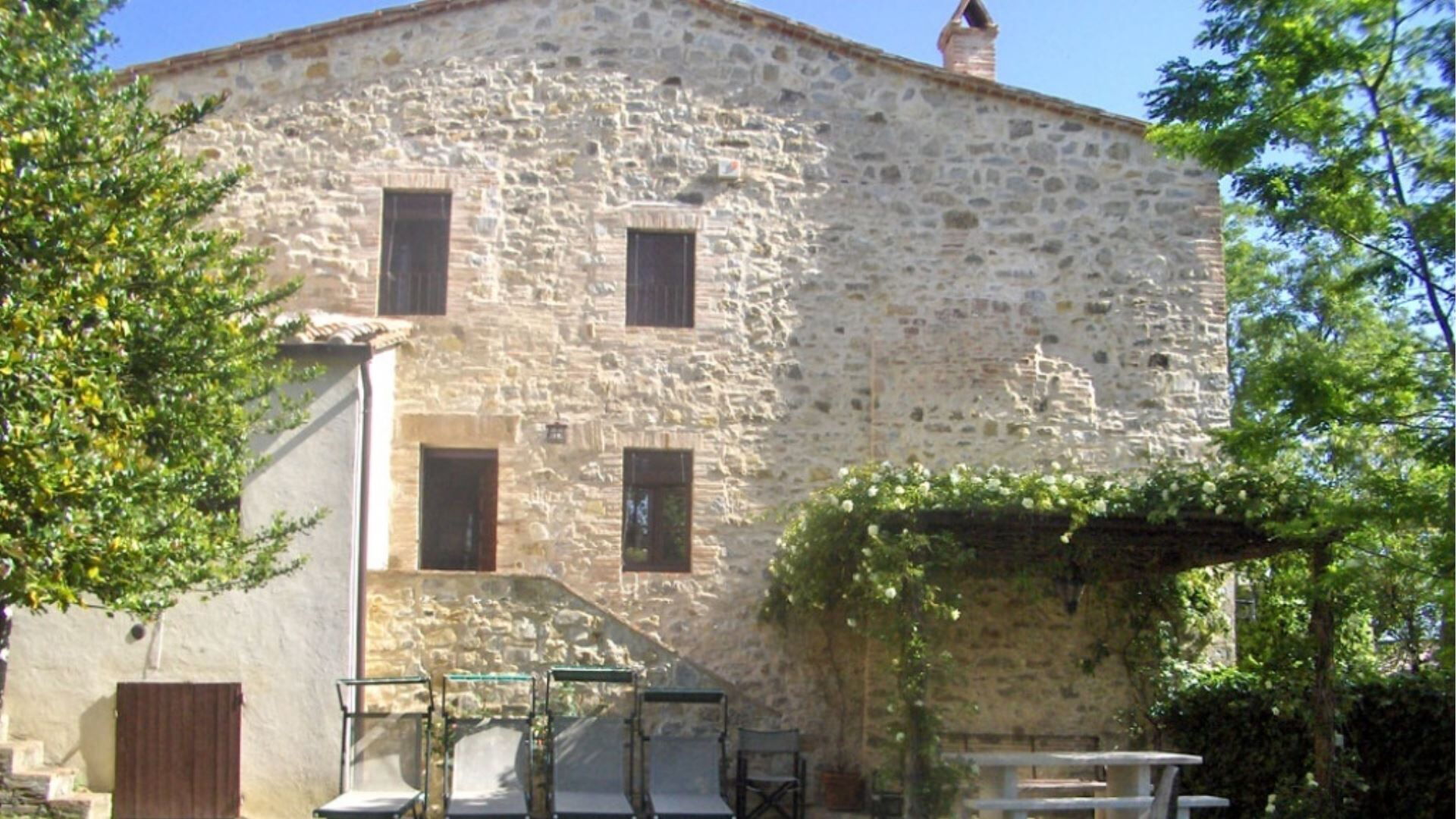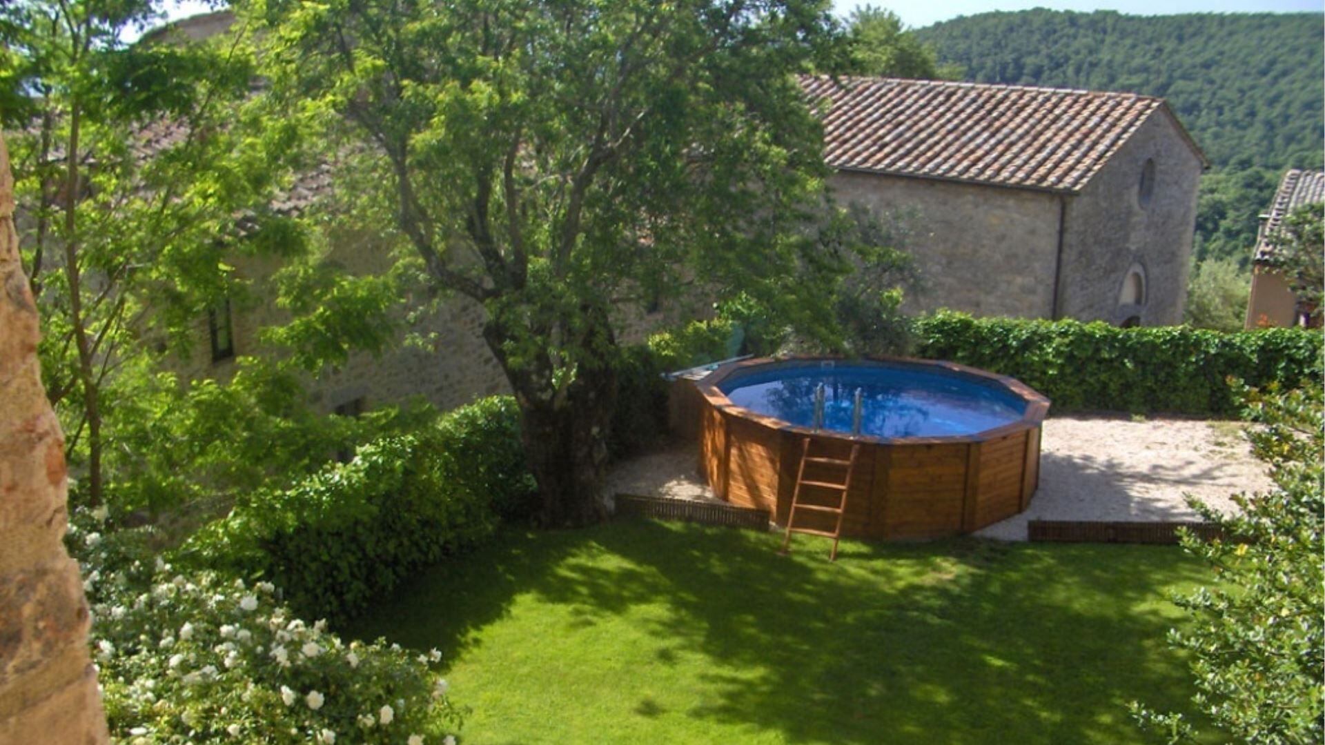 The villa is surrounded by extensive private garden space that enhances the sense of tranquility and privacy. The outdoor area features a circular swimming pool with a diameter of 5 meters and a depth of 1.5 meters, perfect for refreshing dips during warm summer days. The garden provides ample space for outdoor relaxation and leisure activities, allowing you to fully immerse yourself in the peaceful atmosphere of this medieval setting while enjoying the stunning views of the surrounding Tuscan and Umbrian countryside.