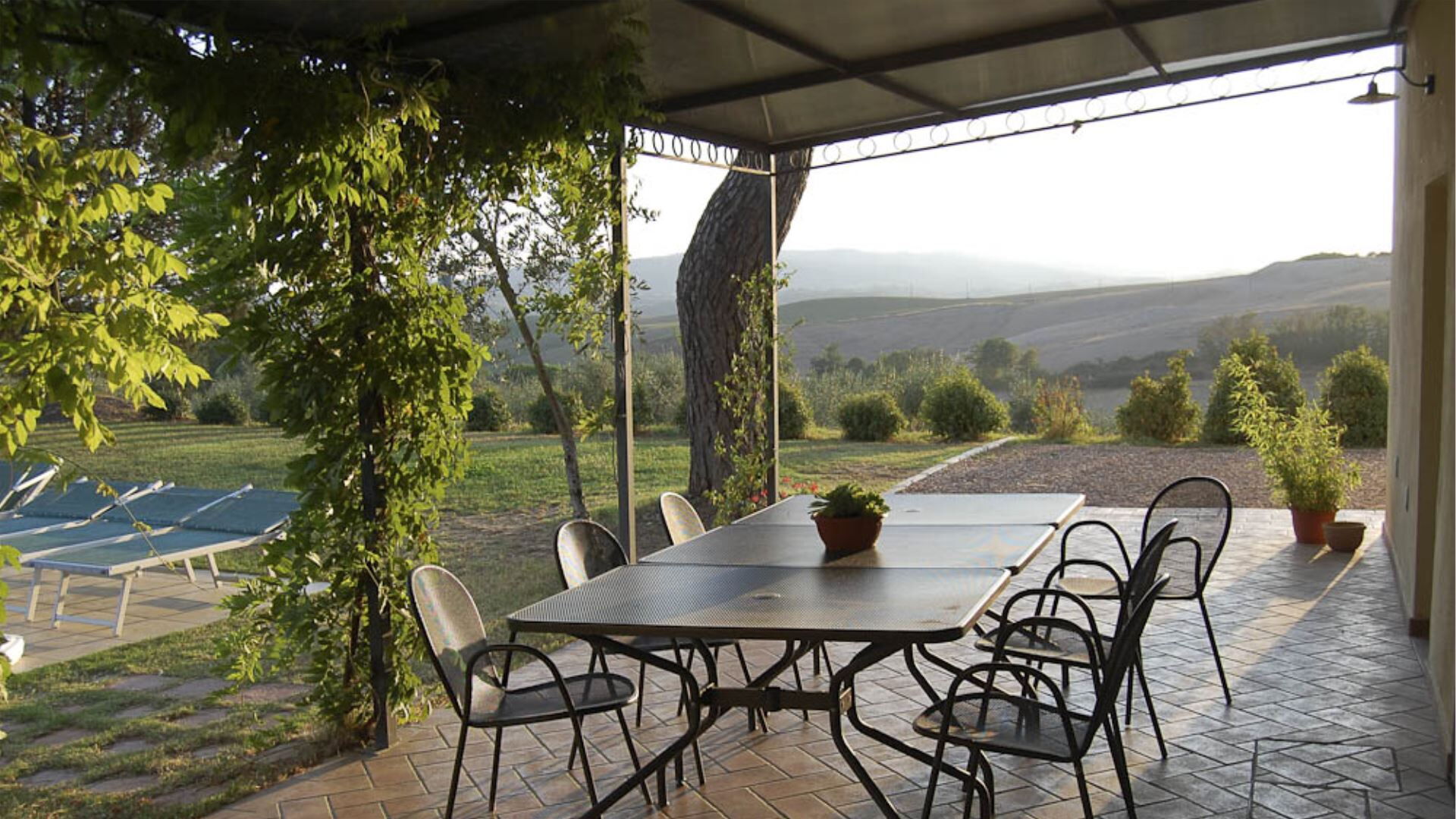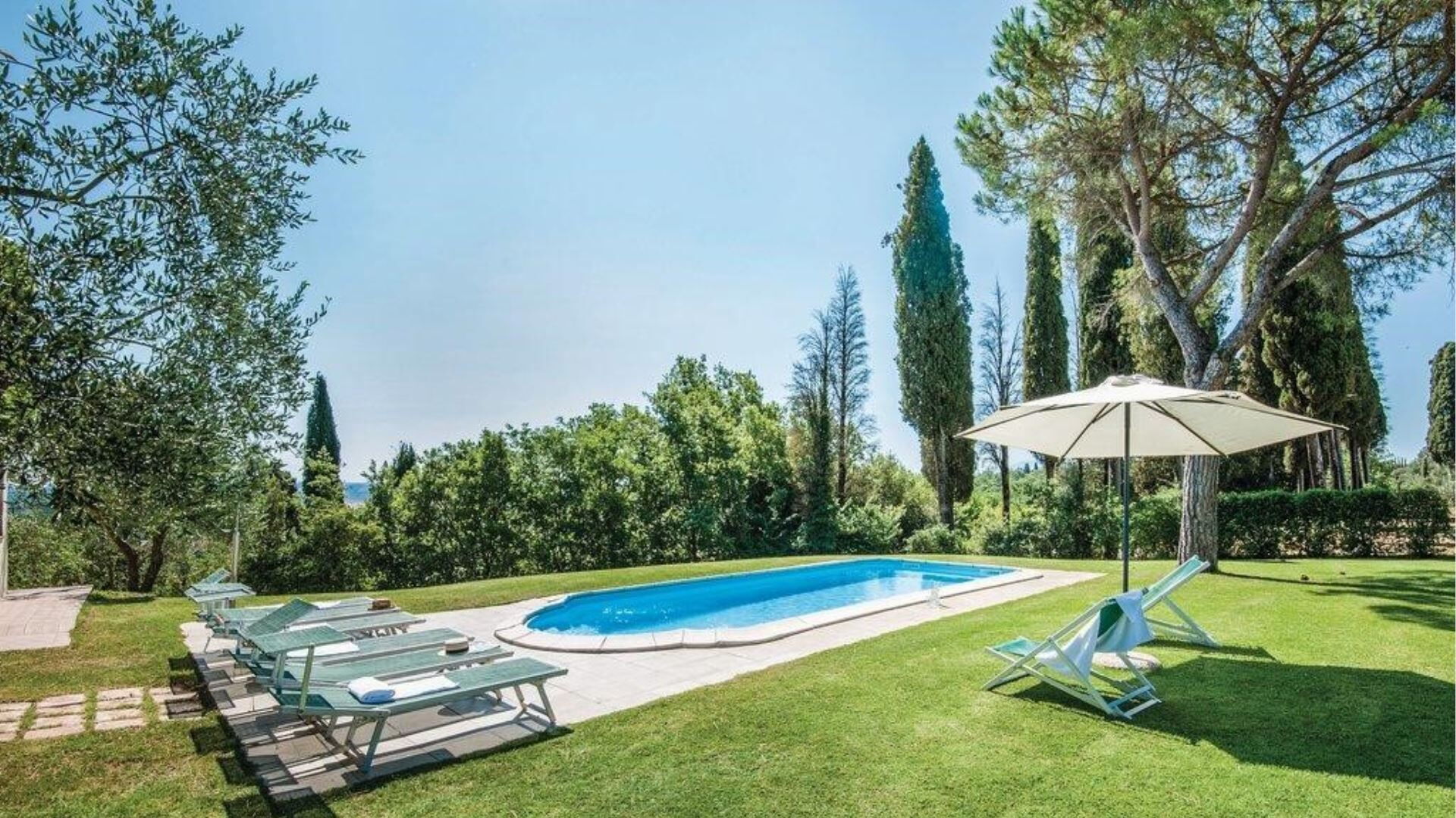 Villa Santo Stefano is an exceptional vacation rental nestled in the charming countryside of Monteroni D'arbia, Italy, offering an ideal retreat for large families or groups seeking privacy and comfort. This independent house accommodates up to 14 guests across 2 separate apartments, each thoughtfully designed to provide spacious living areas and modern conveniences. The property features a beautiful swimming pool surrounded by lush greenery, ensuring a tranquil atmosphere for your stay. Parking is conveniently available on-site for your vehicles. The villa's strategic location combines the serenity of the Tuscan landscape with easy access to local attractions, making it a perfect base for exploring this enchanting region of Italy.