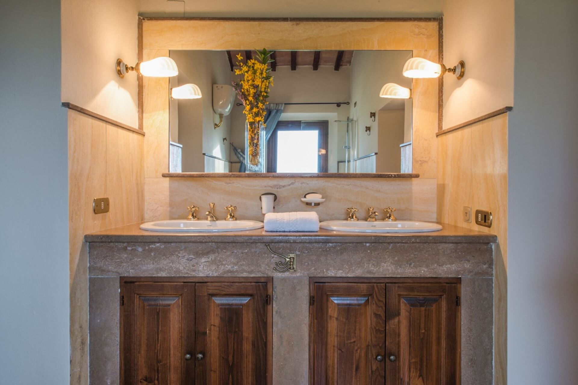 The property enjoys a magnificent position in the gently rolling hills surrounding Monteroni D'arbia, with spectacular views overlooking the historic city of Siena. The location provides an authentic Tuscan experience within the working 35-hectare estate, where you can witness traditional olive oil production and the breeding of Cinta Senese pigs. The surrounding area offers opportunities to explore charming Tuscan towns, renowned wineries, and the rich cultural heritage of the Siena region.