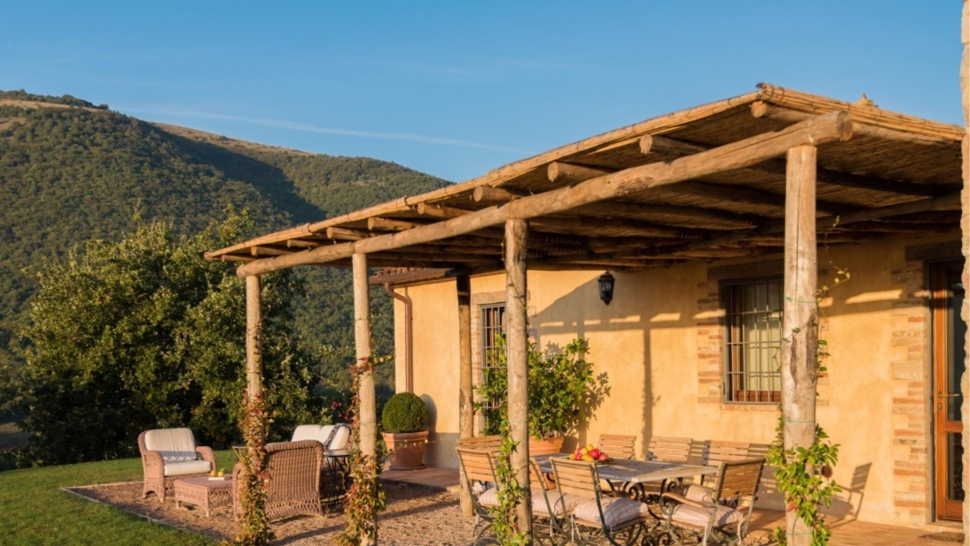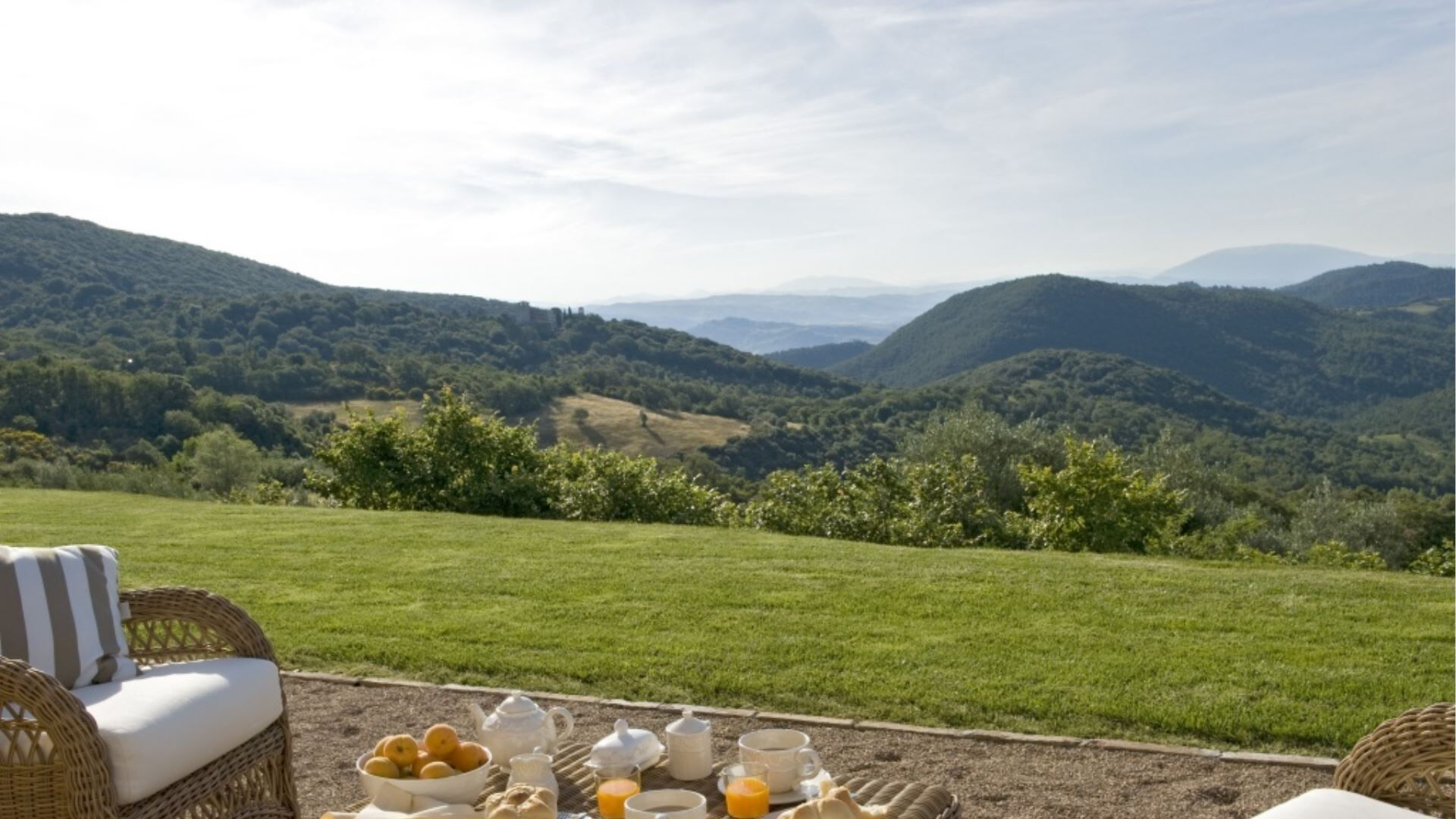 The outdoor spaces at Villa Torre provide multiple areas for relaxation and entertainment amidst the natural beauty of the Umbrian countryside. The magnificent heated infinity swimming pool features a pool cover for convenience and is surrounded by comfortable sunbeds, chairs, and umbrellas where you can bask in the Italian sunshine. An outdoor dining area with a table and sofas faces the living room, complete with a parasol for shaded comfort during warm afternoons. The dedicated barbecue area includes a table with seating for 8 people and an umbrella, perfect for al fresco dining experiences. The property is surrounded by a private walled and landscaped garden that ensures complete privacy, while a charming pergola offers additional shaded space for outdoor leisure. The spectacular roof terrace accessible from the second floor provides an elevated vantage point to admire the enthralling views of the estate's thousands of acres of immaculate woods, olive groves, superb valleys, lakes, and rivers that define this remarkable landscape.