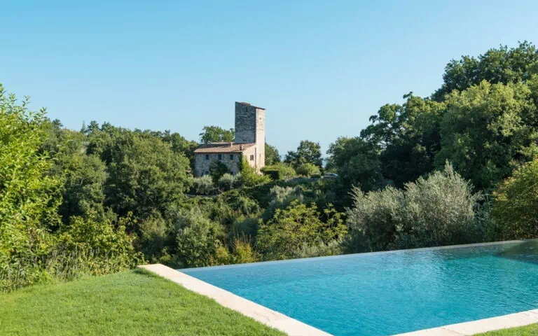 Villa Ugo is a magnificent luxury vacation rental situated in the heart of Magione, Italy, within the prestigious Tenuta Umbra Estate. This exclusive private country estate, owned by the same family for generations, spans thousands of acres of pristine woods and olive groves, offering superb valleys, lakes and rivers that create an ideal setting for a peaceful and relaxing retreat. Perched atop a hill in a commanding position over the entire Tiber valley, Villa Ugo is an ancient castle with an adjoining church dating back to the 11th century, skillfully renovated to blend historic grandeur with contemporary luxury. The property features a private infinity swimming pool measuring 14 meters by 4 meters, which integrates seamlessly into the landscape as an integral part of the architectural complex. From this elevated vantage point, you will enjoy breathtaking views over fields of olive trees, vineyards and rolling green hills that stretch as far as the eye can see. The estate delivers remarkable levels of comfort and elegance, making it an incomparable destination for discerning travelers seeking an authentic experience in the Italian countryside. With accommodation for up to 20 guests across 10 beautifully appointed bedrooms, each with its own private marble bathroom, Villa Ugo offers generous space and sophisticated amenities throughout both the main residence and the separate annex building.