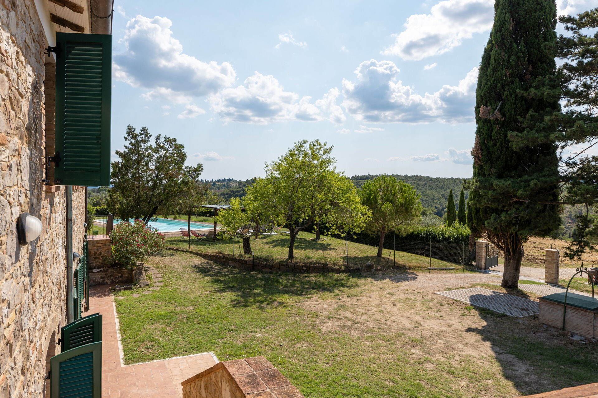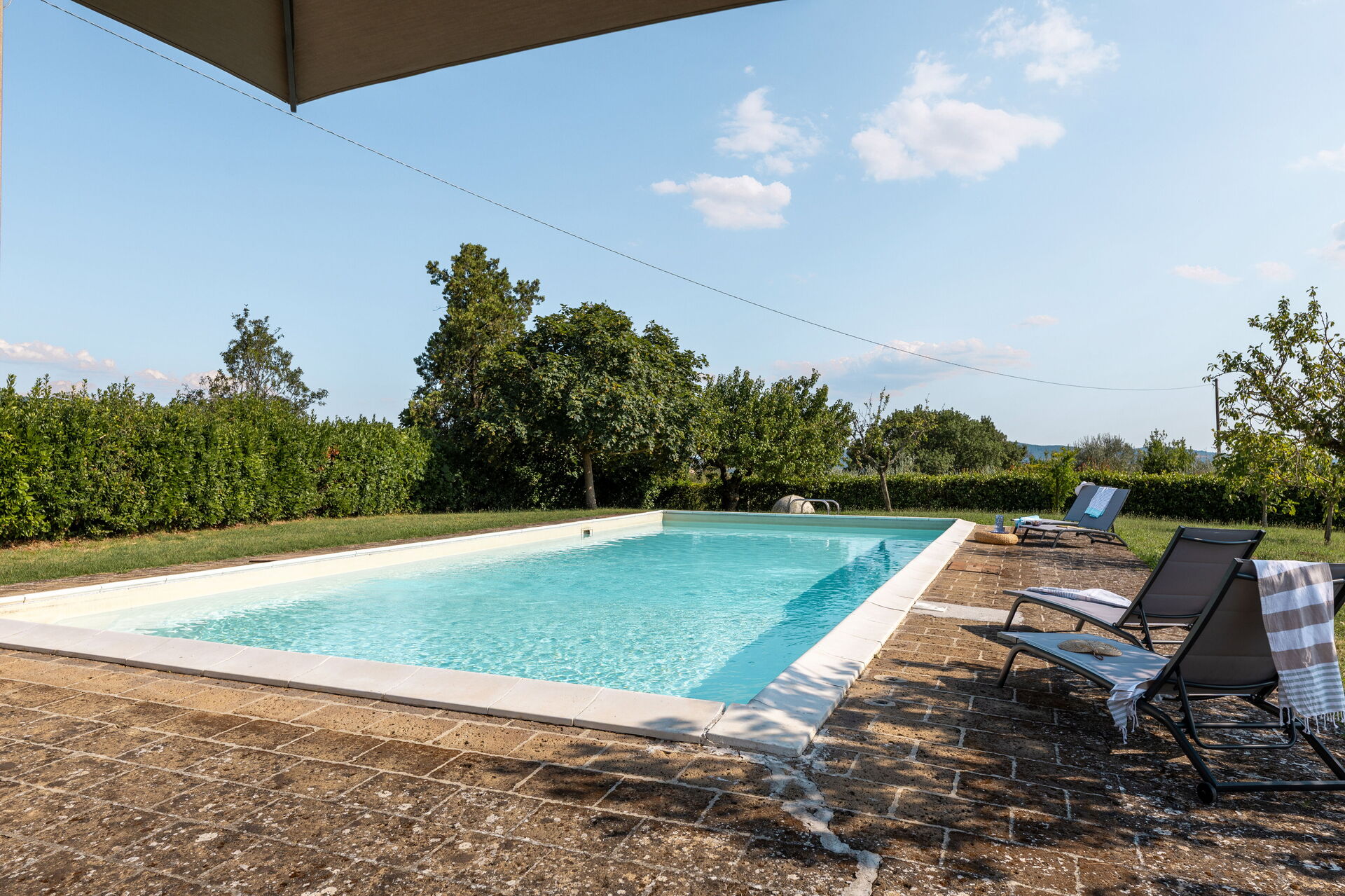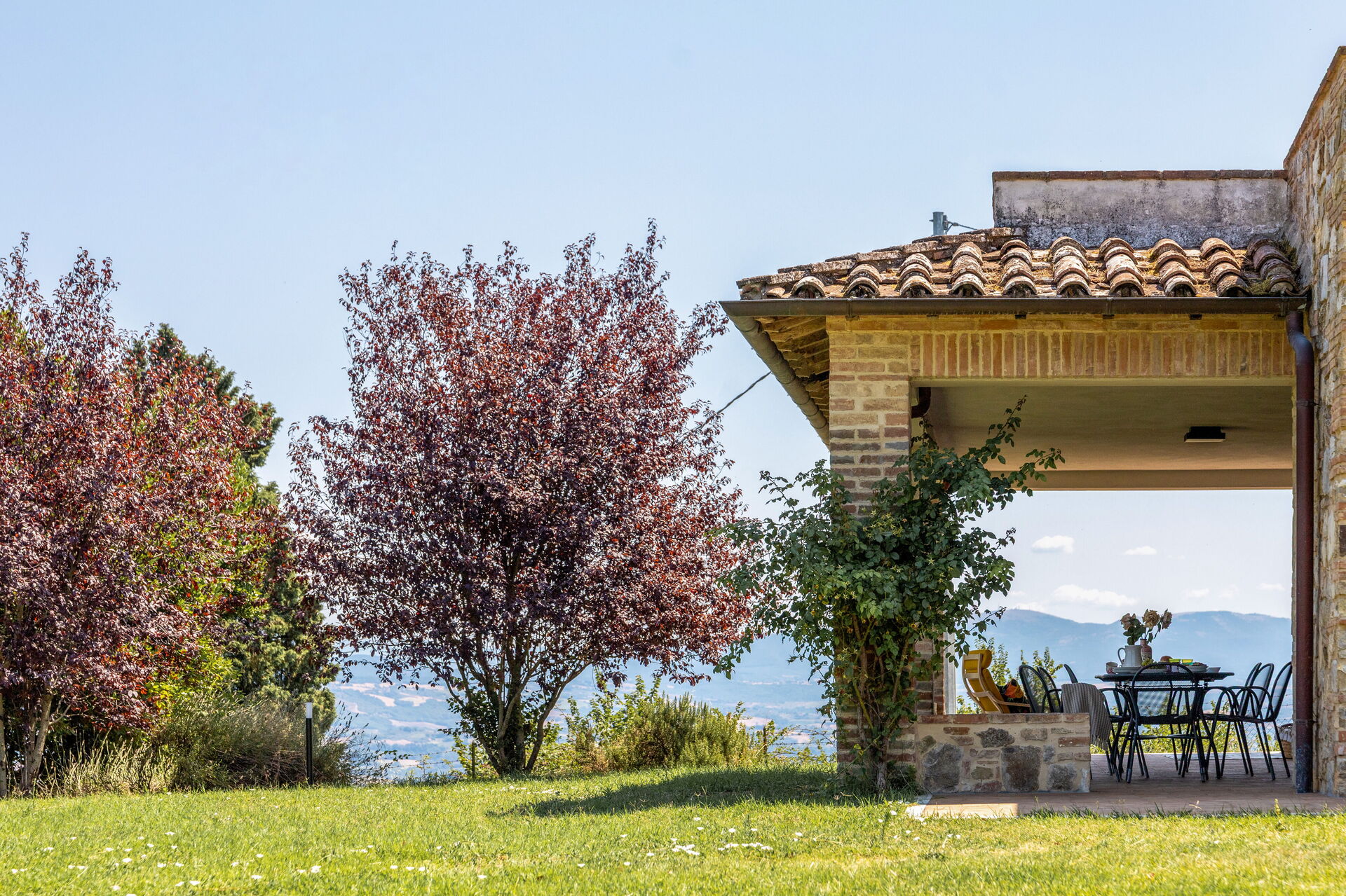 Upon arrival you will be welcomed by the owner or manager where you’ll find a beautiful clean well-maintained property with views of the hills ideal for a peaceful vacation in Umbria. Regardless of how you spend your days - shopping, sightseeing, visiting museums or just driving in the countryside, when you arrive home you can unwind with your family and friends at the pool for a perfect ending to another day in Umbria. Outdoors you will also find a patio and barbecue grill. If you enjoy cooking for family and friends there is a well-equipped kitchen including stove and refrigerator, as well as, plenty of tableware and cutlery for up to ten people.