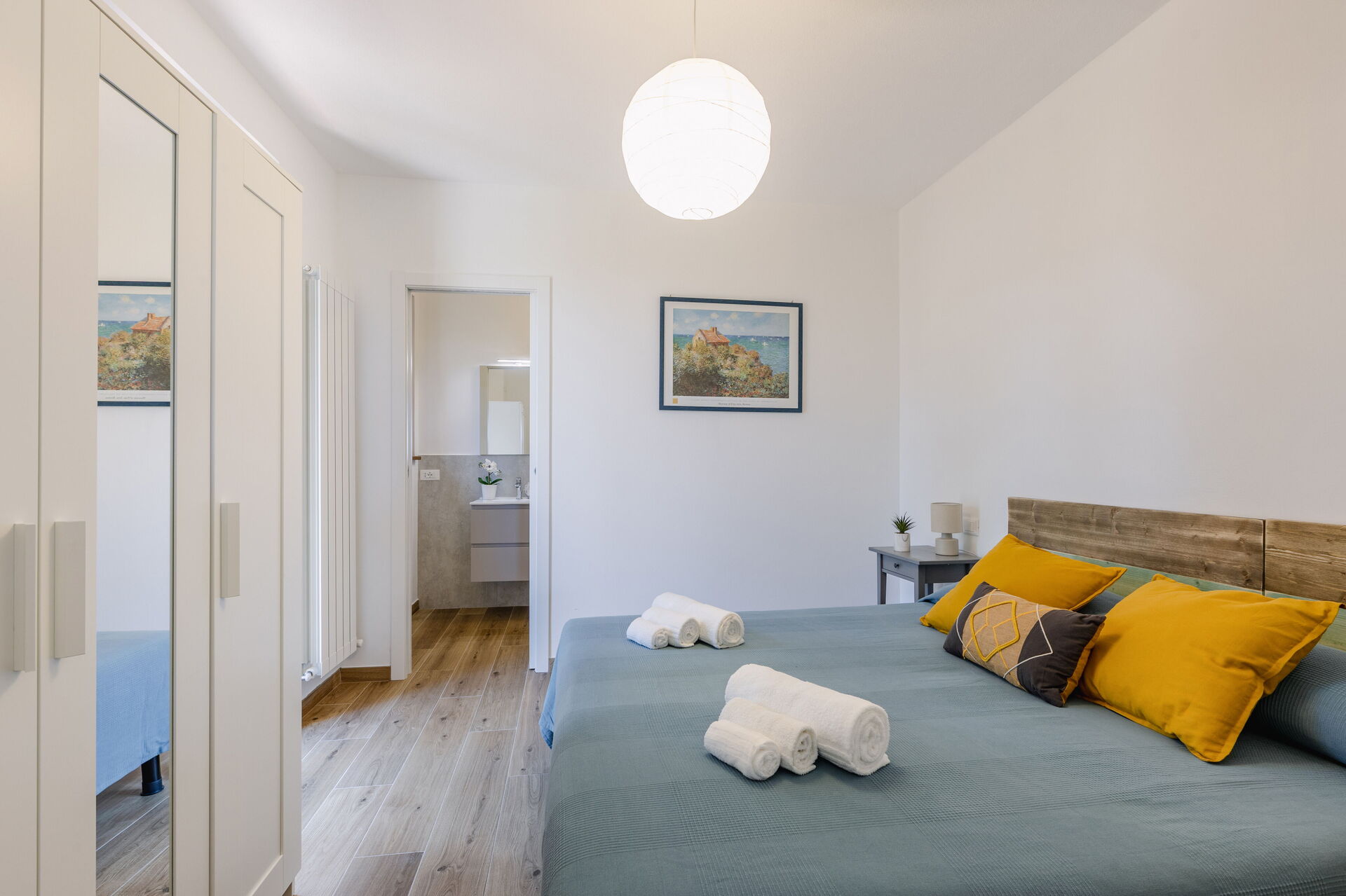 Bedroom + Ensuite Bathroom 1: double bed, WIFI internet, basin, toilet, bidet, shower.