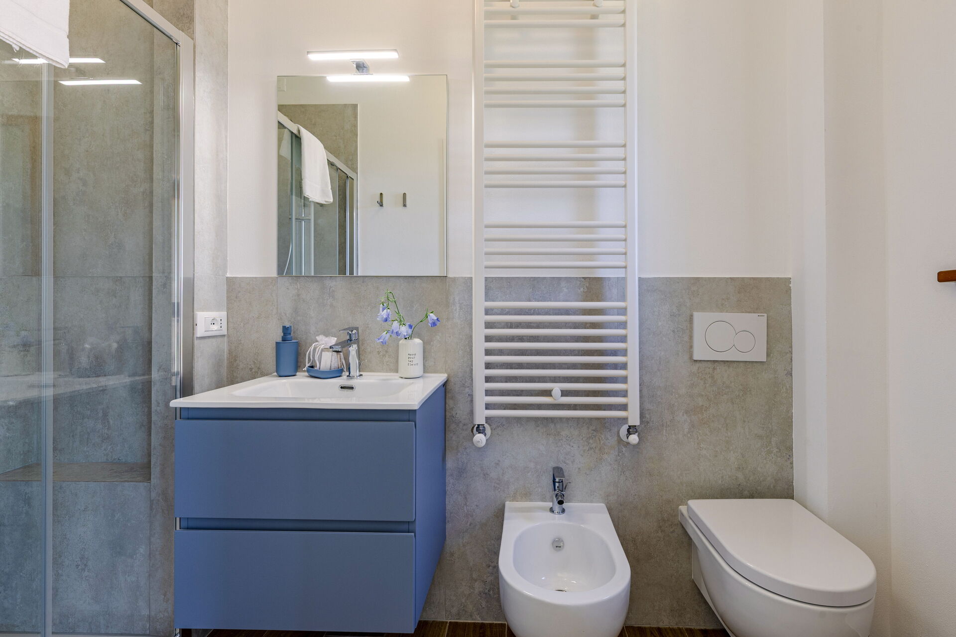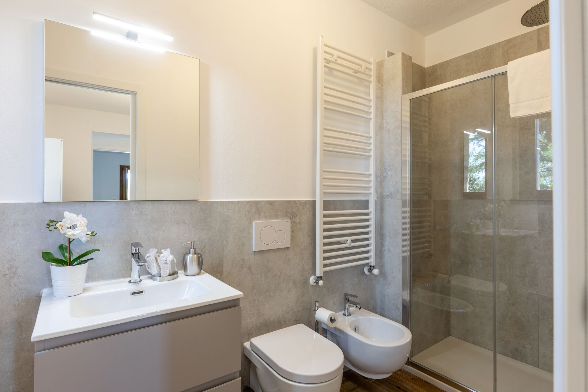 Bedroom + Ensuite Bathroom 2: double bed, WIFI internet, basin, toilet, bidet, shower.