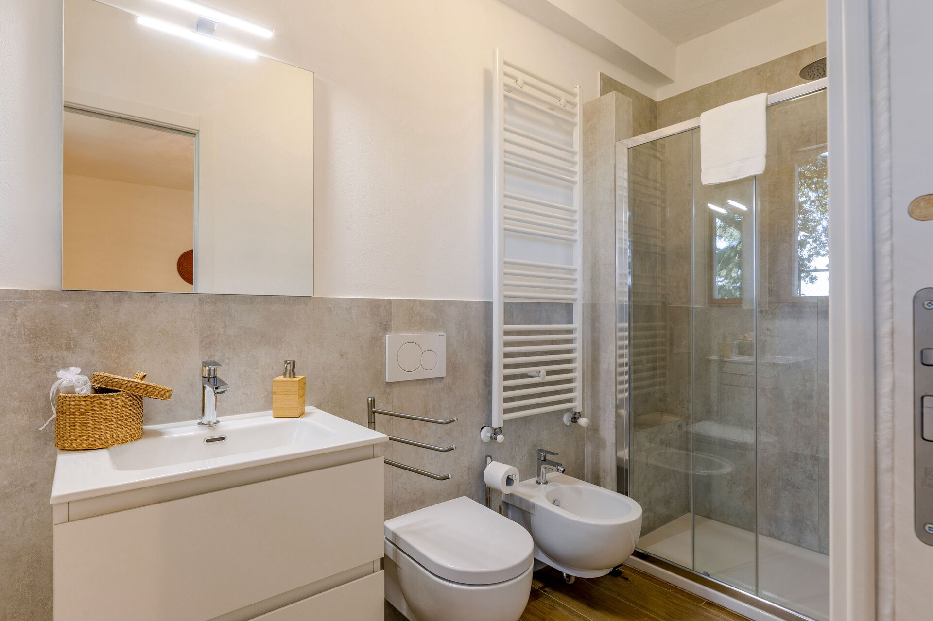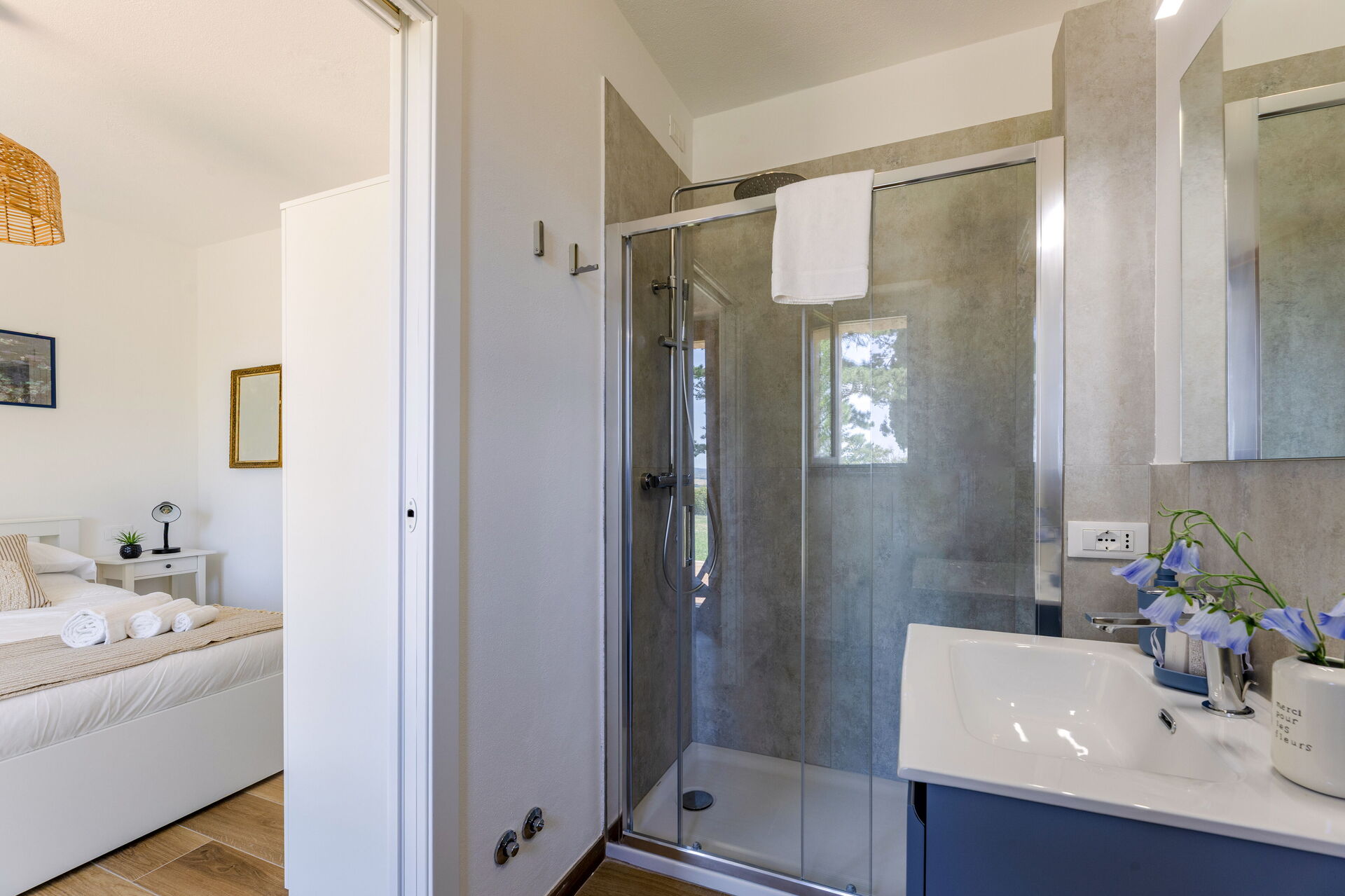 Bedroom + Ensuite Bathroom 4: double bed, WIFI internet, basin, toilet, bidet, shower.