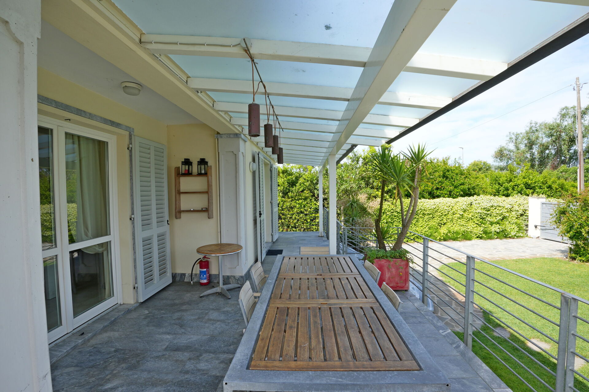You can dine comfortably on the back terrace, directly accessible from the kitchen.
