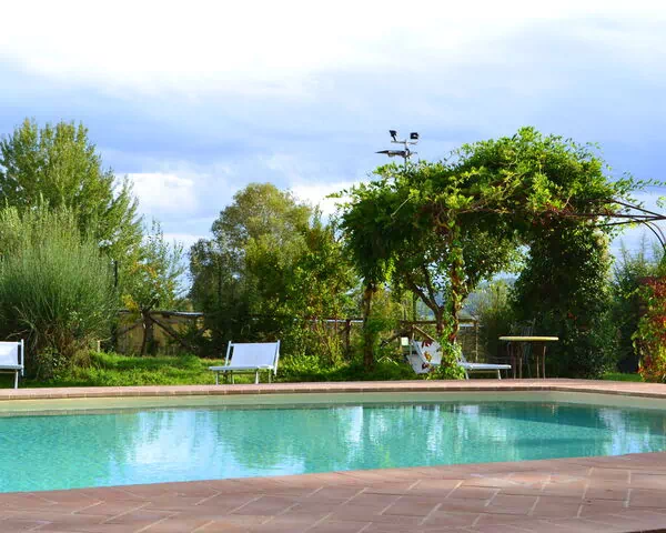 The living capacity for the entire property is 48 persons; in the garden there is a very large covered outdoor space where people can eat together.