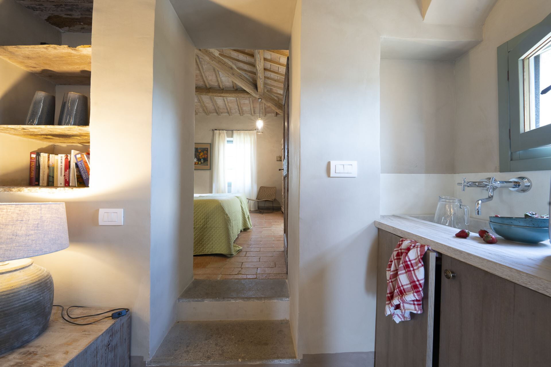 When you arrive you will be greeted by the owner or manager where you’ll find a beautiful clean well-maintained property ideal for a splendid holiday in Umbria. After a busy day of sightseeing, spend some time with friends and family poolside enjoying a glass of wine - a perfect way to relax at the end the day. Outdoors you will also find a barbecue grill and patio. If you enjoy cooking for family and friends there is a well-equipped kitchen including coffee machine, microwave, toaster, stove and refrigerator, as well as, plenty of tableware and cutlery for up to eight people. If you prefer to dine 'al fresco', there is a fully furnished veranda where you can enjoy the weather while dining outdoors.