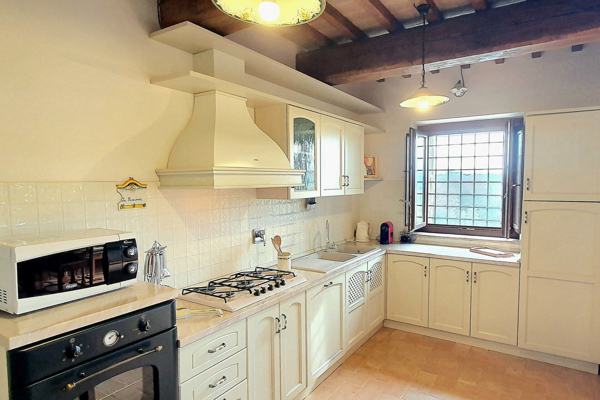 Upstairs, the master bedroom boasts an en-suite bathroom and a private terrace offering sweeping vistas of the Umbrian hills—a serene spot to enjoy a quiet morning coffee.