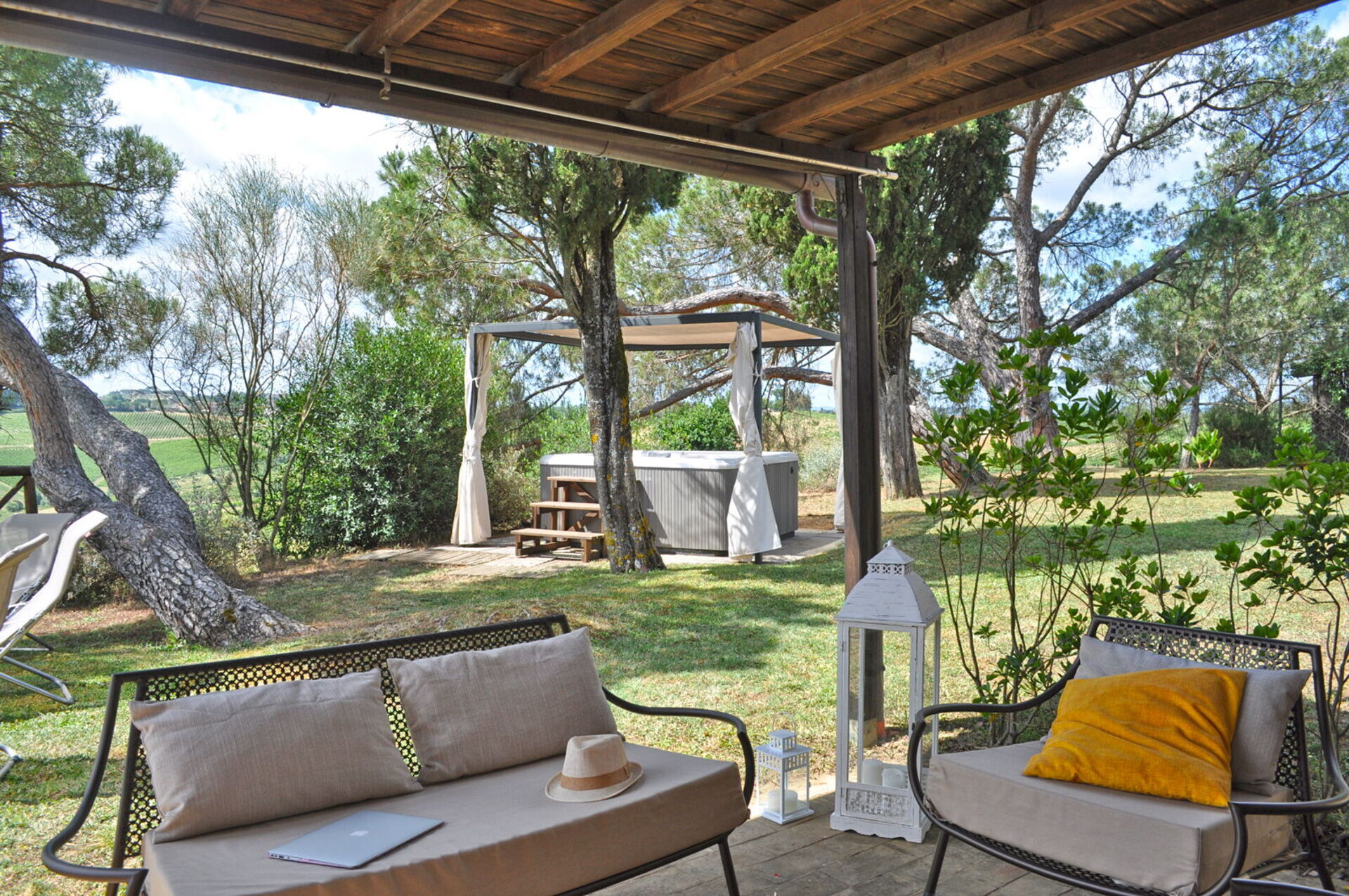 Veranda (20 m2): outdoor hot tub (length: 2.1m, width: 1m), al fresco dining, dining table (people: 8), WIFI internet, barbecue, garden furniture.