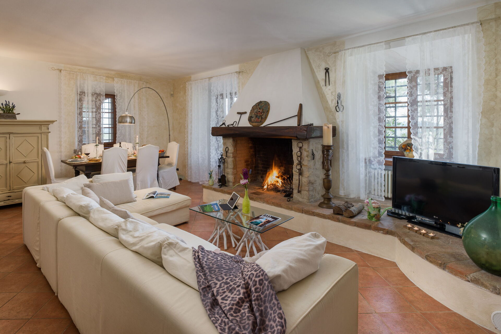 Kitchen + living room (4 m2): well equipped kitchen, dining table (people: 6), dishwasher, fridge, freezer, microwave, stove top, oven, toaster, italian coffee machine, american coffee machine, sofa (people: 7), fireplace, WIFI internet, WIFI internet, air conditioning, mosquito net, highchair, television, smoke detector, smoke detector, co2 detector, co2 detector, stereo hifi, exit to the garden, exit to the garden, exit to the patio, exit to the veranda, exit to the veranda.