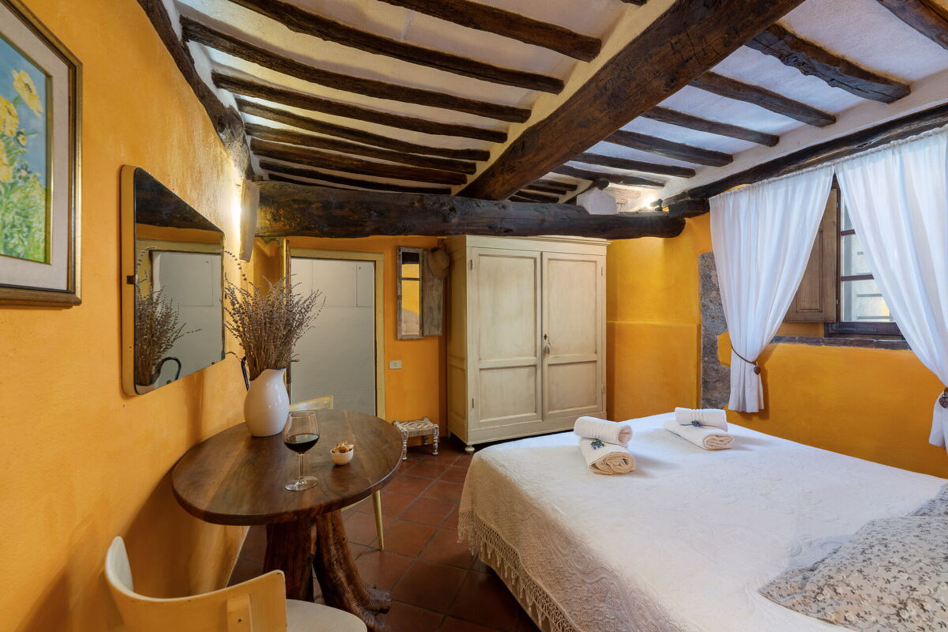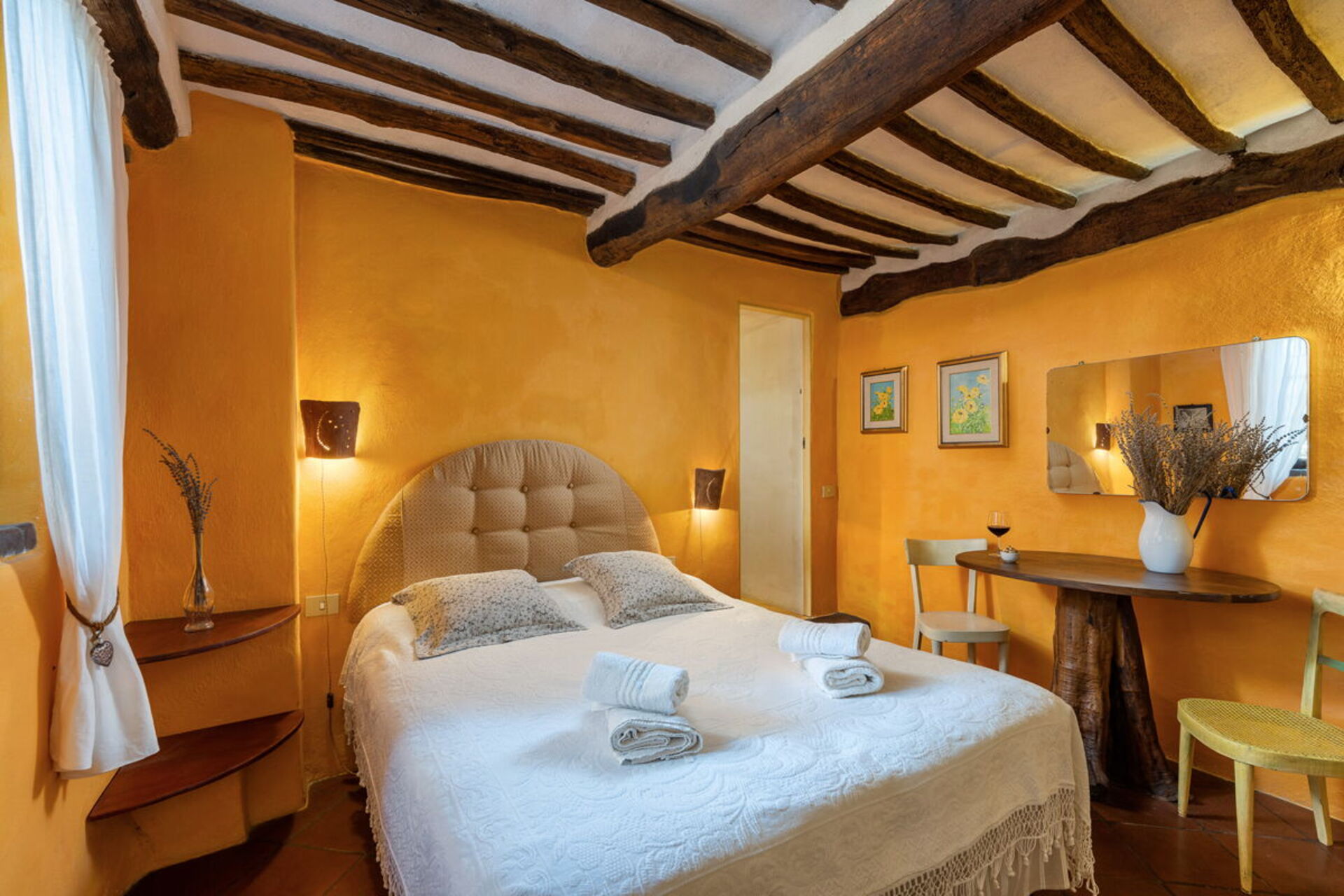 Bedroom + Ensuite Bathroom 2: double bed (length: 1.9m, width: 1.6m), WIFI internet, portable fan, armchair, working desk, basin, bidet, shower, hairdryer, exit to the veranda.