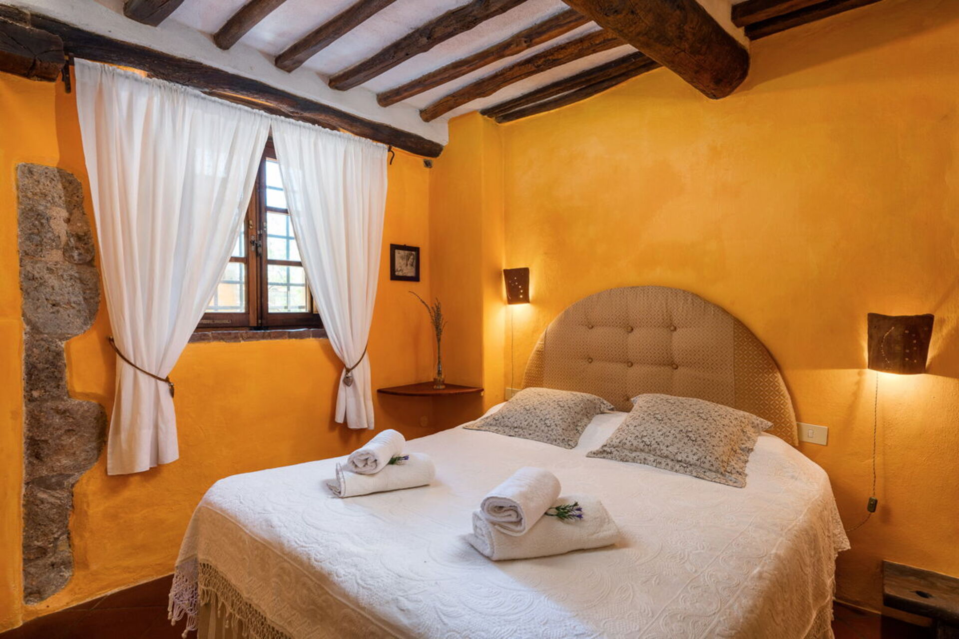Bedroom + Ensuite Bathroom 3: double bed (length: 1.9m, width: 1.6m), WIFI internet, mosquito net, armchair, basin, bidet, shower, hairdryer.