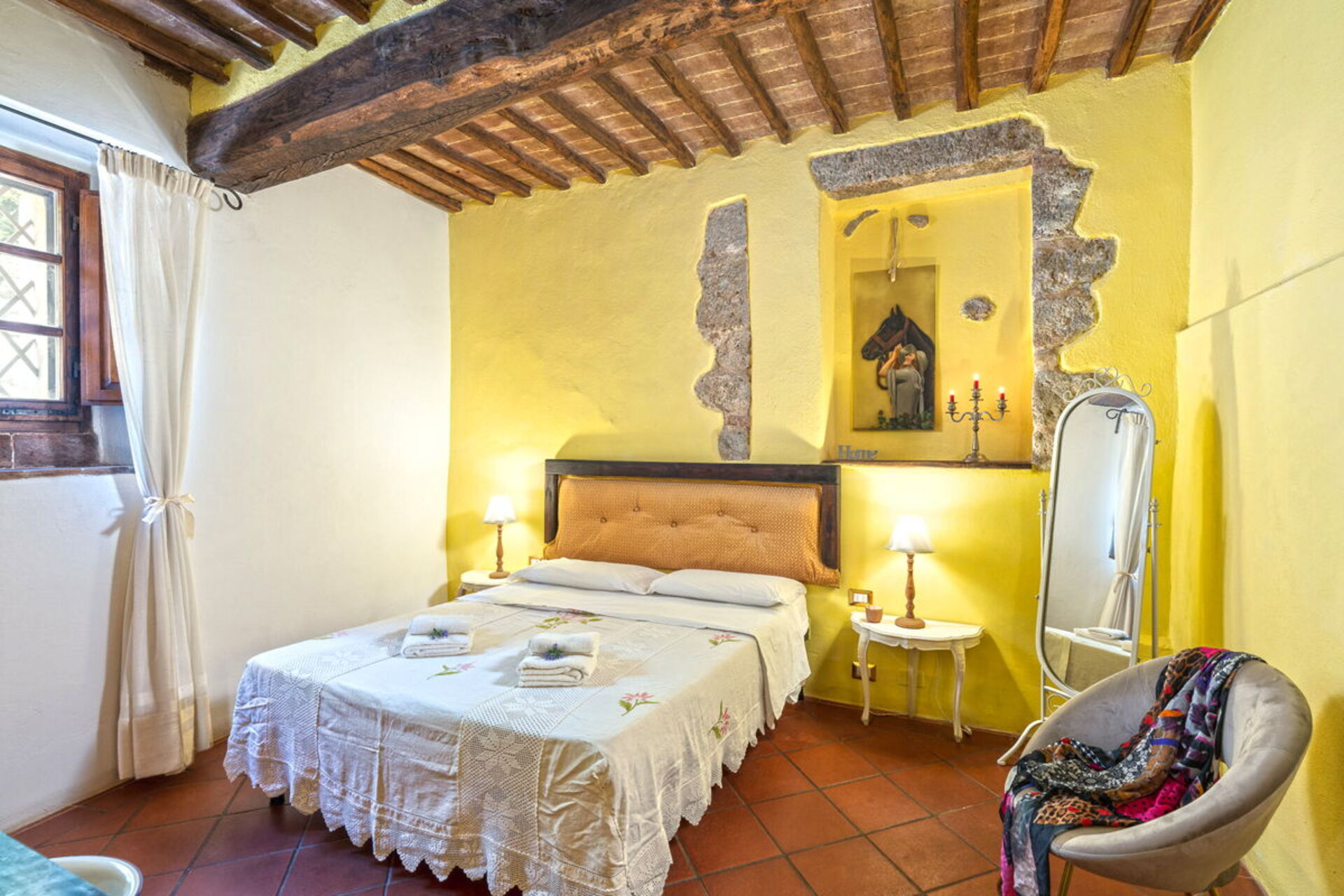 Conveniently located 14 km (9 mi) from Monteriggioni, Italy in the tourist area "Siena And Surroundings" and only 14 km (9 mi) from Siena. Podere Lorena, Charming Tuscan Farmhouse is a lovely stone building (300 sq m) with hot tub, private pool and WiFi internet. The property can accommodate up to 12 guests comfortably in six bedrooms with six bathrooms.
