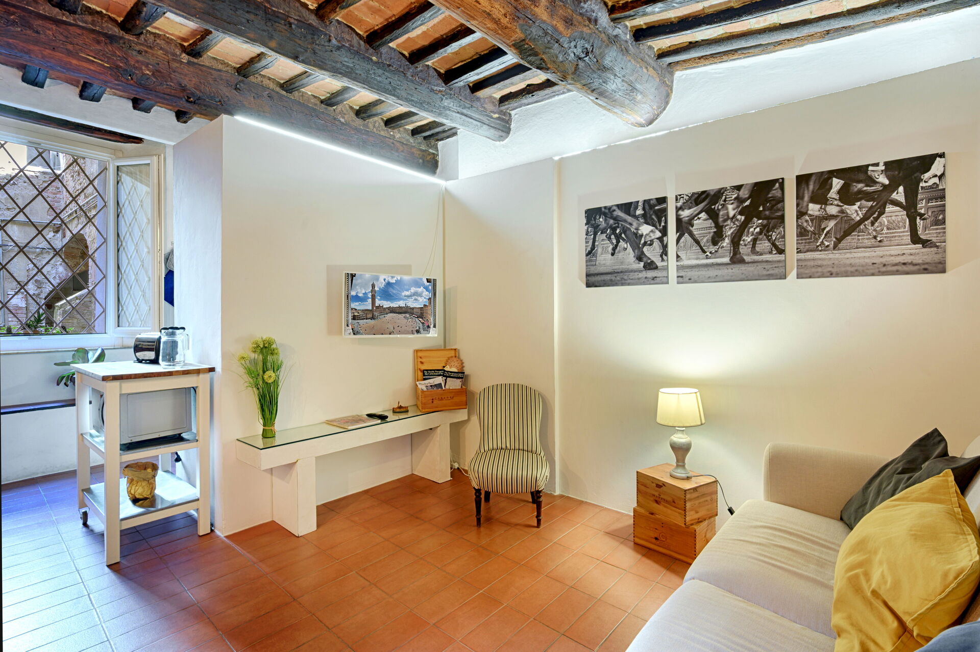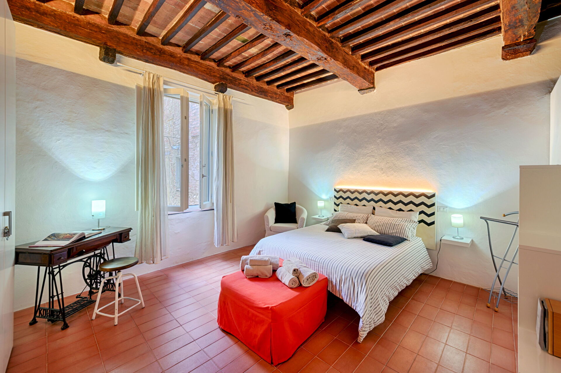 The Silent Courtyard Retreat: Spacious 2-Bedroom S is a nice property (90 sq m) with WiFi internet. The property can accommodate up to four guests comfortably in two bedrooms with two bathrooms. The Silent Courtyard Retreat: Spacious 2-Bedroom S is located in the centre of Siena, Italy and only 40 km (25 mi) from San Gimignano in the tourist area "Siena And Surroundings".